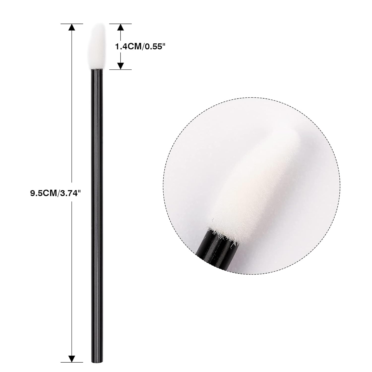 • Package & Size: 100PCS disposable lip brushes, enough quantity for you to use and change. The lip wands are 3.54''/9cm long, the cotton brush head is 0.47''/1.2cm, easily suited for your daily needs and perfect for lip gloss or lipstick