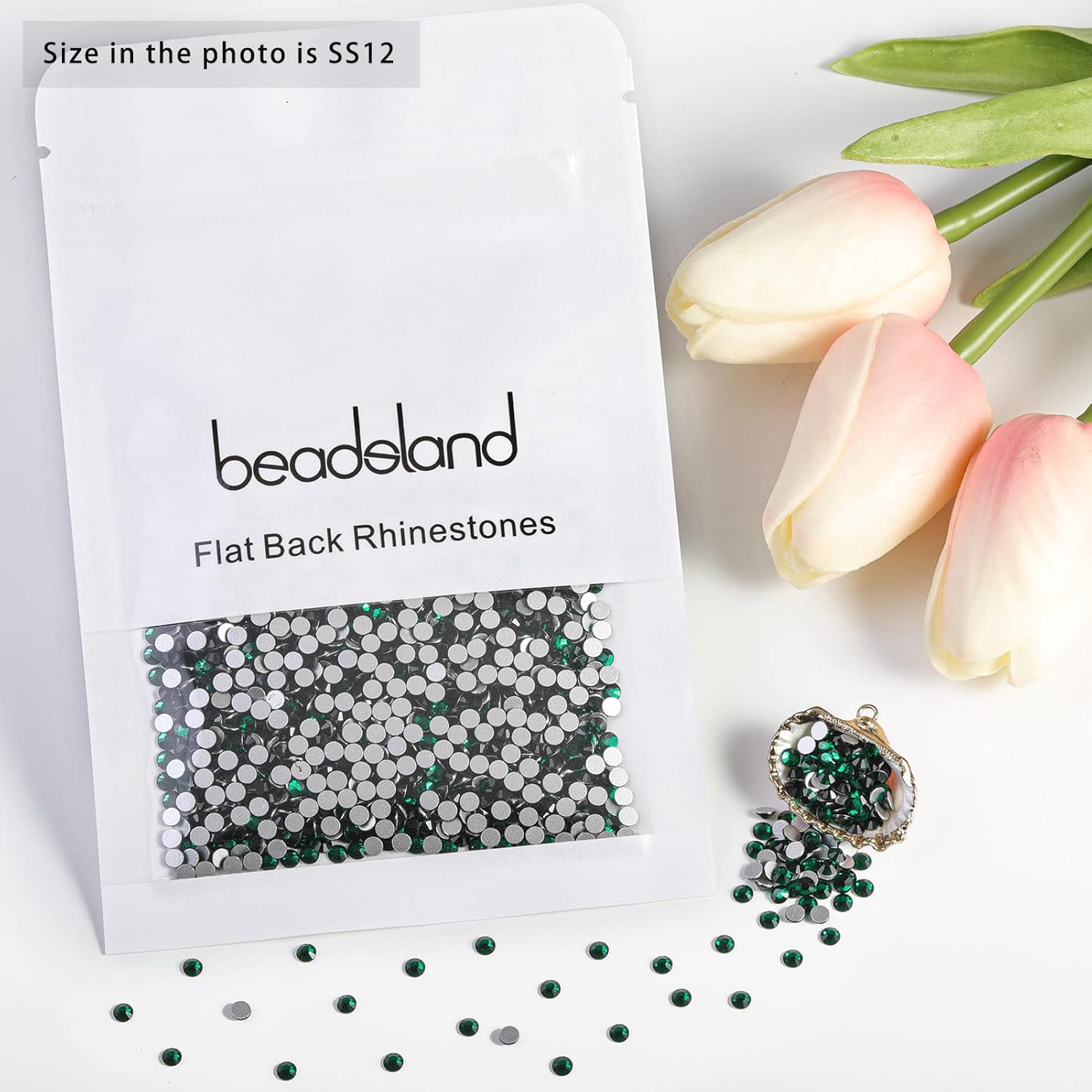 beadsland Flat Back Crystal Rhinestones Round Gems for Nail Art and Craft Glue Fix, Emerald (2.9-3.0mm) SS12/1440pcs