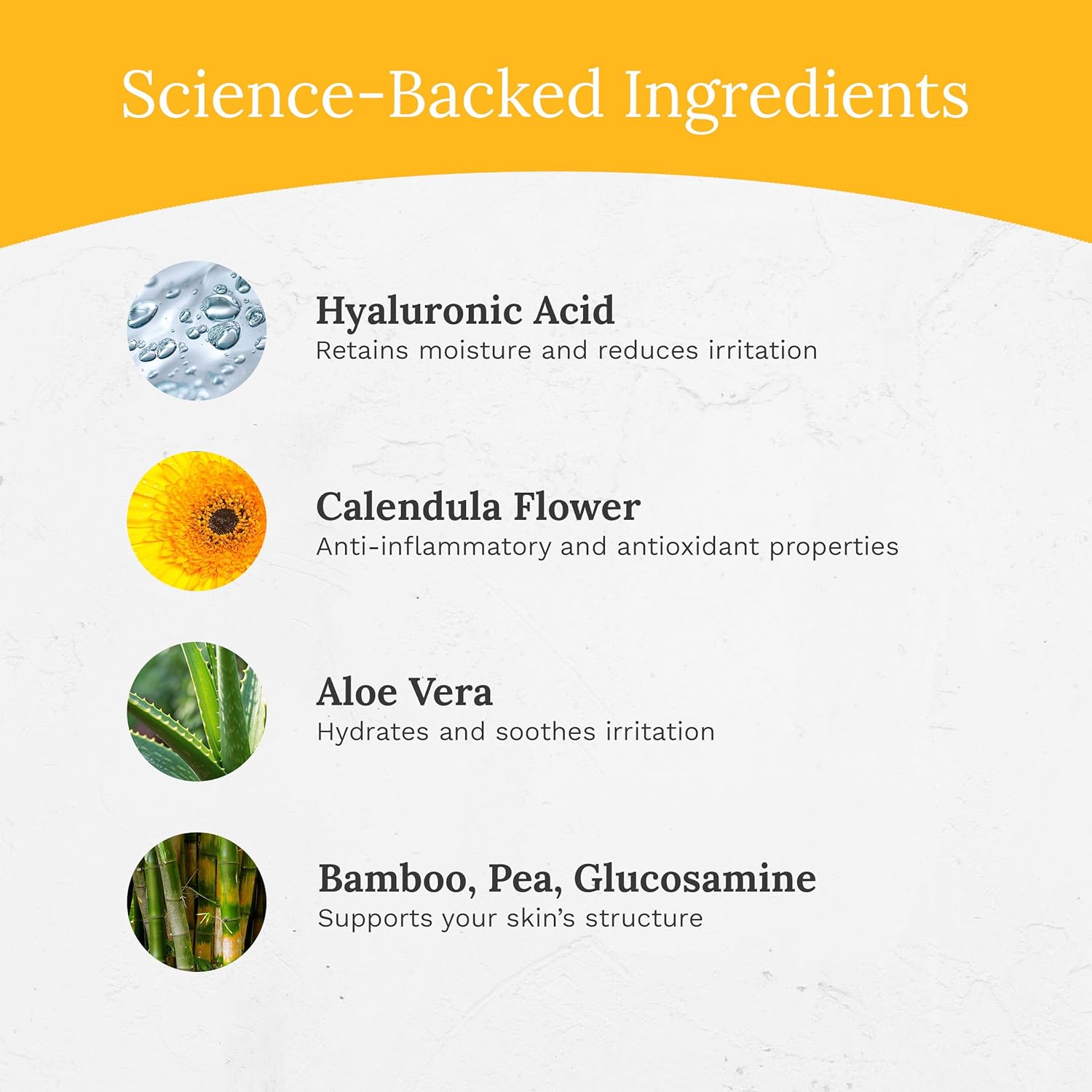 • Natural Ingredients: Contains botanicals like Aloe and Calendula that help retain moisture and improve skin's elasticity and structure