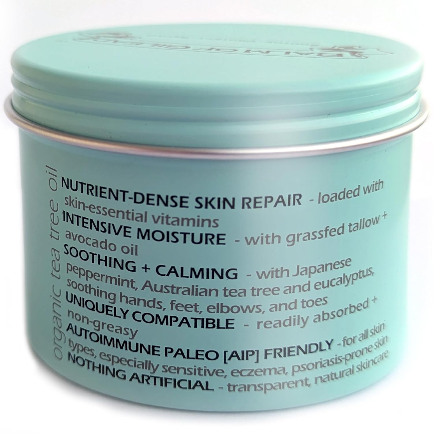 • 🌿 Soothing and Calming Moisture – A nourishing foot and hand cream enriched with peppermint, Australian eucalyptus, and tea tree oils. This refreshing botanical formula helps soothe dry, rough, or irritated skin while delivering fast-absorbing hydration. Perfect for daily use on tired feet and overworked hands, this intensive tea tree balm leaves your skin feeling soft, smooth, and revitalized.