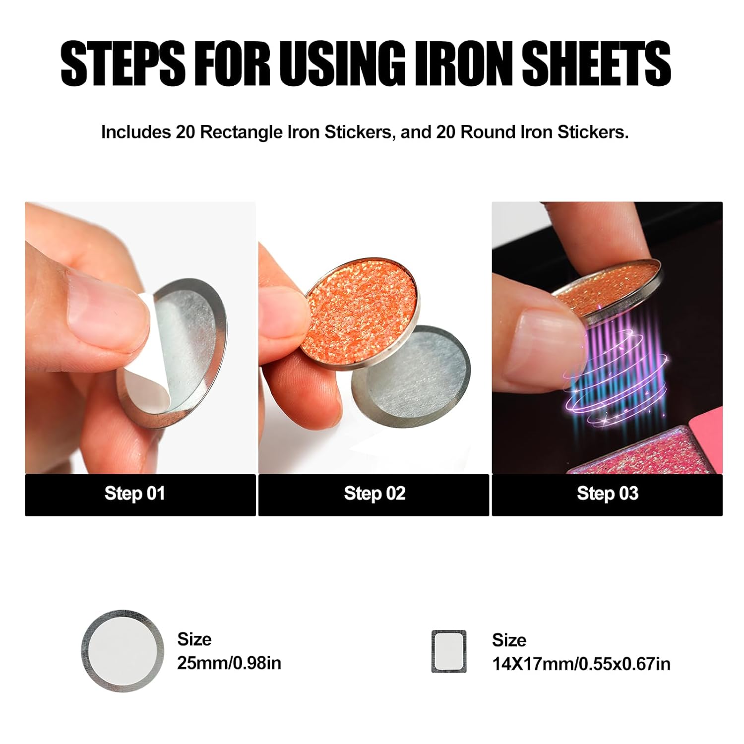 • Package Includes: 43-Piece Magnetic Makeup Depotting Kit Inside one convenient package, you’ll get everything needed to organize your loose makeup pans: 2 empty magnetic palettes (1 holds up to 18 pans, 1 fits 9 pans), 1 stainless steel depotting spatula, 20 self-adhesive round metal stickers, and 20 self-adhesive square metal stickers—43 pieces total to streamline your makeup storage. Empty pans are not included.