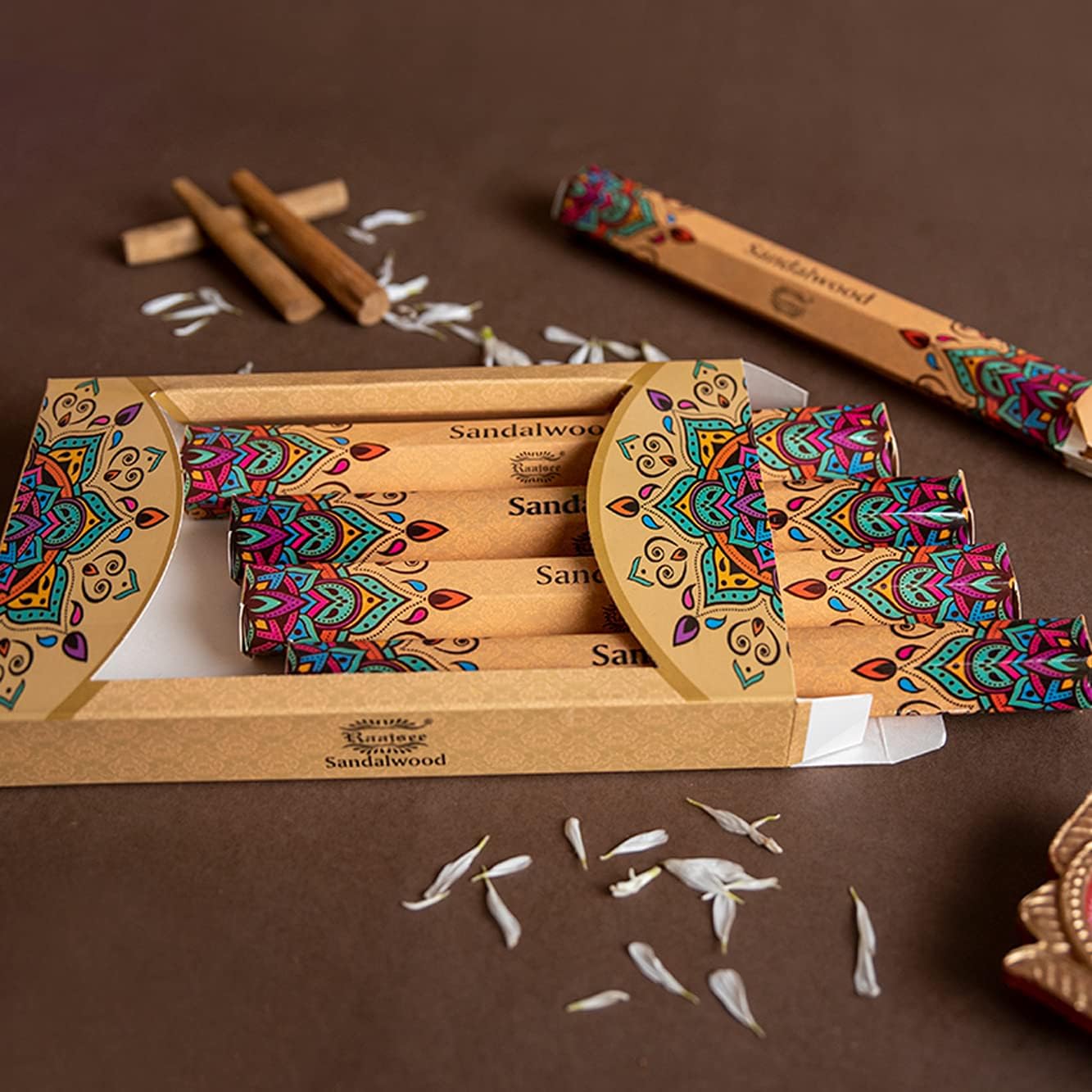 Raajsee Sandalwood Incense Sticks 15 Sticks x 5 Pack -100% Pure Insense Organic Natural- Hand Rolled Free from Chemicals - insent Stick Perfect for Church Aromatherapy, Stress Relief, Meditation