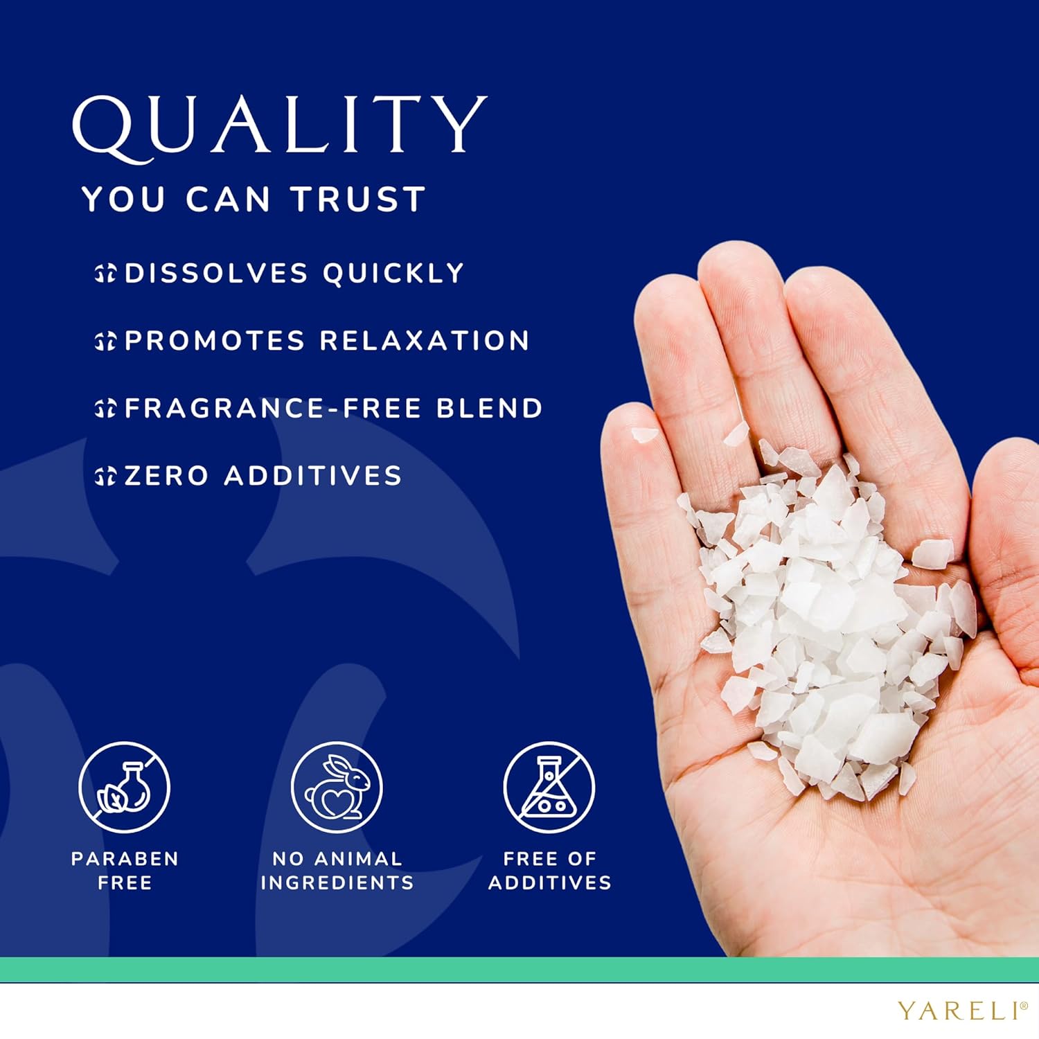 • Harvested from the Dead Sea - Yareli's pure magnesium chloride flakes are imported from the Dead Sea in Israel, a salt lake that people have visited for centuries for its relaxing properties