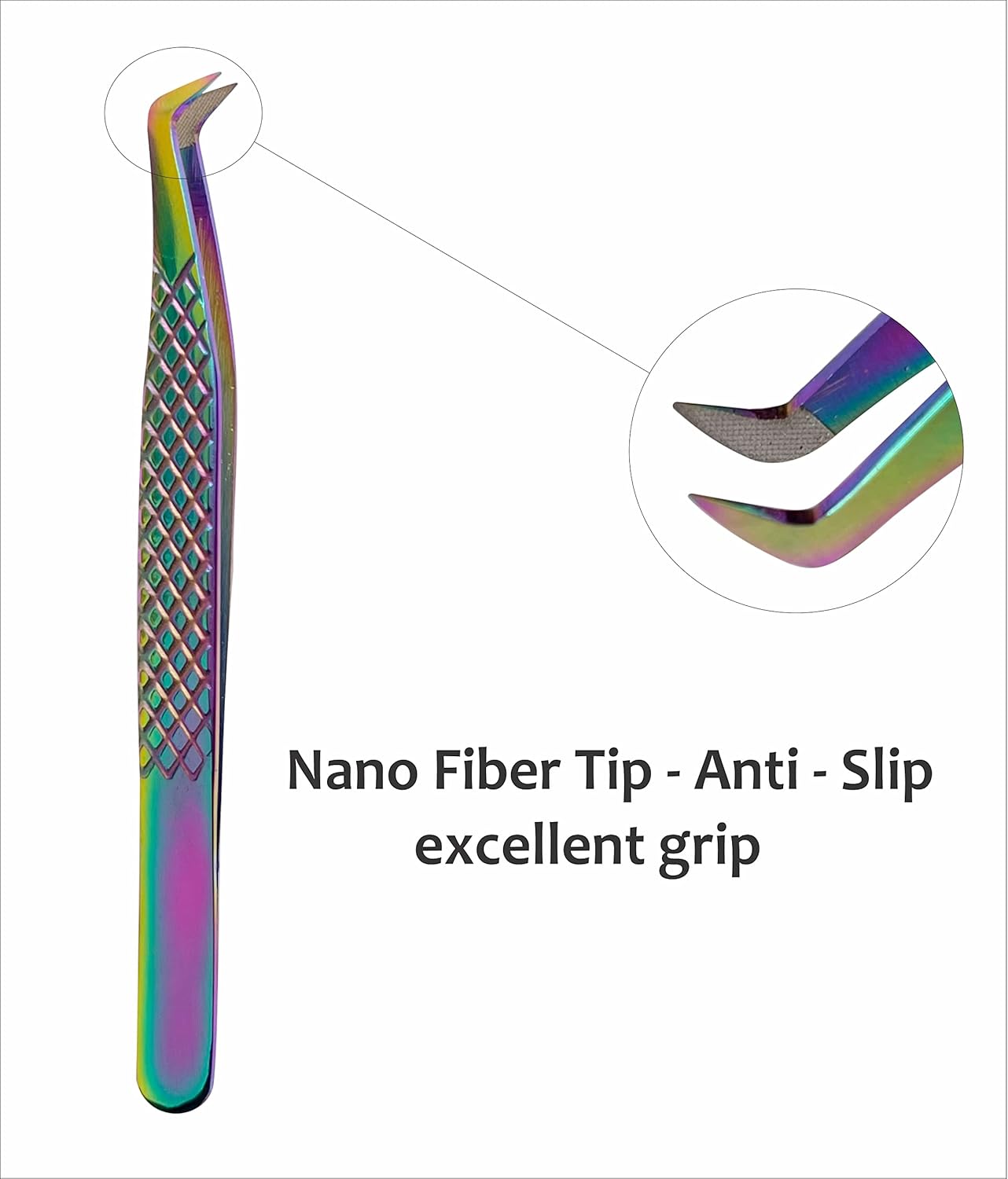 • HIGH PRECISION FOR FLAWLESS APPLICATION: Experience the art of flawless lash application with these lash extension tweezers. Our lightweight, anti-slip diamond grip handle empowers you with unmatched control, while finely crafted fiber tips grant you the precision needed for flawless results