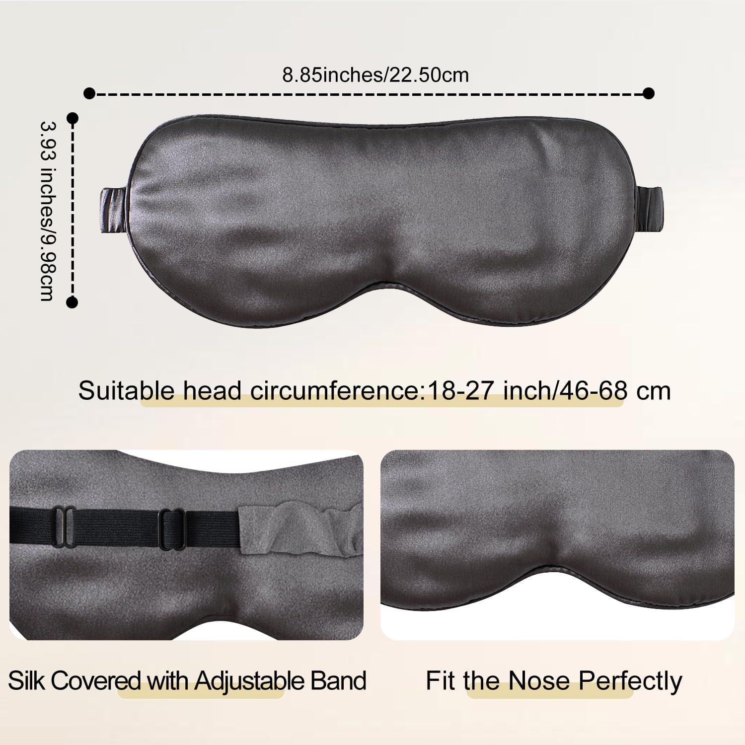 ZIMASILK Adjustable 100% 22 Momme Mulberry Silk Sleep Mask for Sleeping, Filled with Premium Mulberry Silk, Softest & Breathable Eye Sleeping Mask (Blackish Grey)