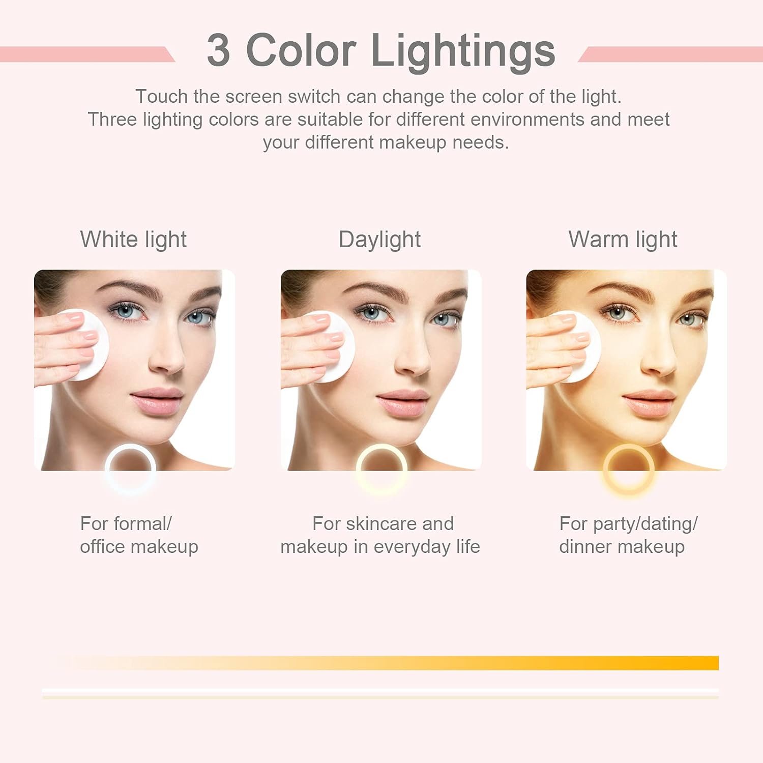 • 【 Powerful Light Brightness 】- This lighted makeup mirror surrounded by 72Pcs bright LED lights that can give you great assistance for making up and make you have perfect viewing while applying make up in dark or poorly lit areas. You can choose different light colors, white light, warm light and natural light according to your needs.