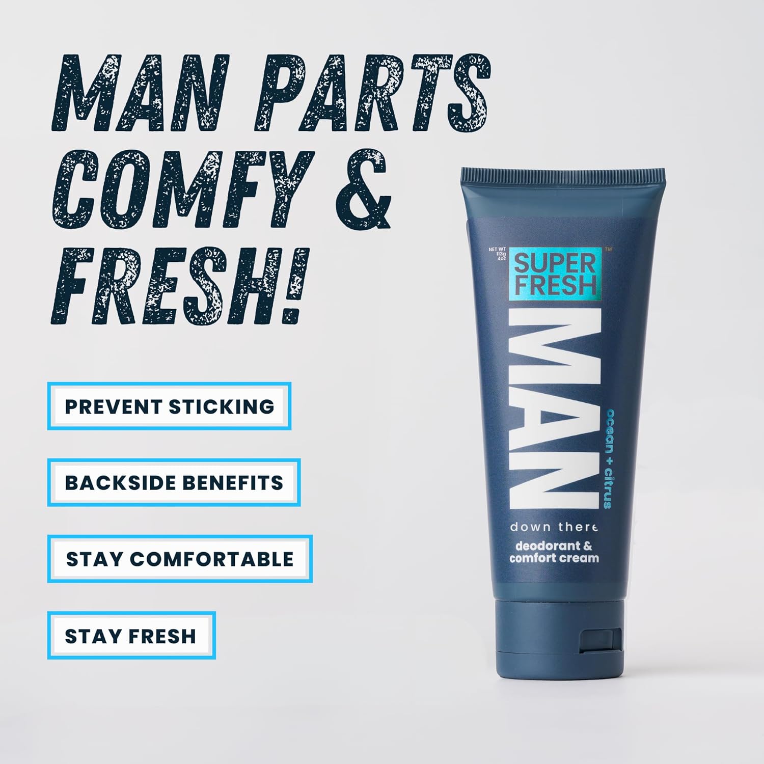 • TARGETED FRESHNESS WHERE MEN NEED IT MOST: Whether you’re battling summer heat, gym sessions, or long workdays, Super Fresh Man Parts lotion keeps you feeling clean, dry, and confident all day long. Proudly formulated, filled, and sealed in the USA, this innovative men’s care essential is designed for those who value comfort and hygiene without harsh chemicals—just smooth protection where it really counts.