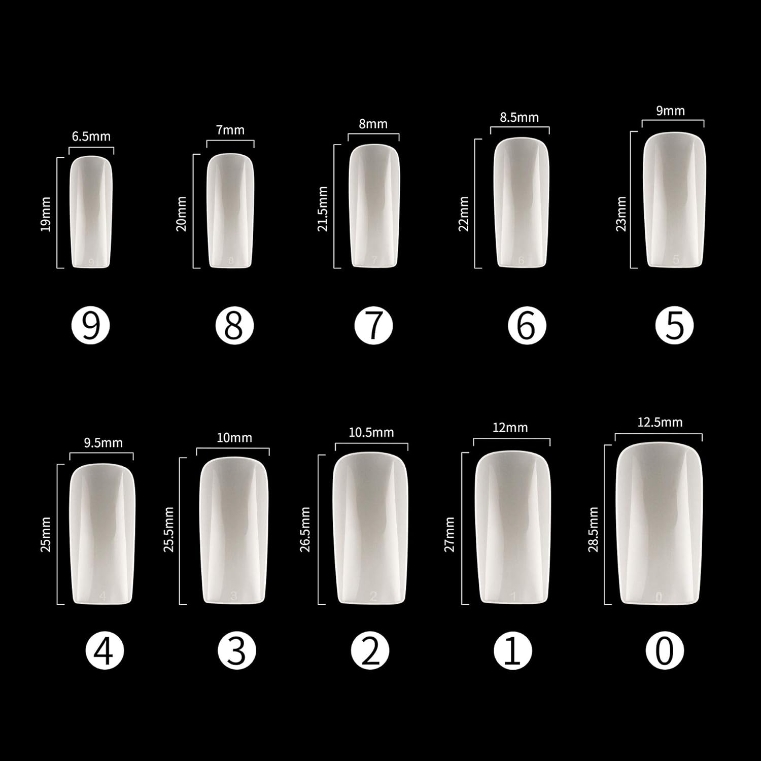 Full Cover Acrylic False Nail Tips, 500PCS Fake Nail Shape Artificial False Nails Tips 10 Sizes with Case for Nail Art Salons and Home DIY (Natural)