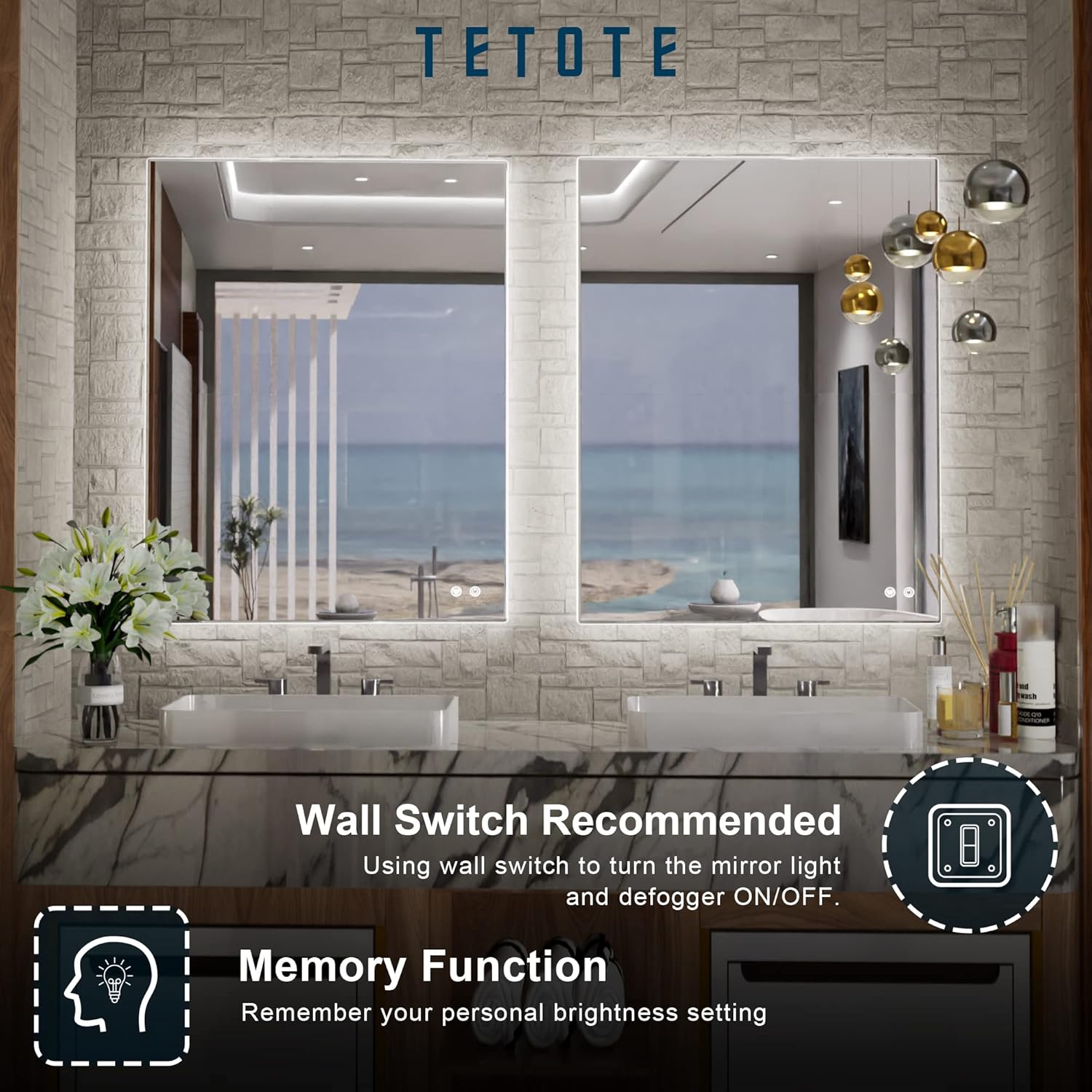 • ✨【Reliable packing & Easy installation】-TETOTE mirror is secured by reinforce foam box with extra protection.Plug and screws included.Installed with plug or hardwired,horizontal or vertical all by your choice.