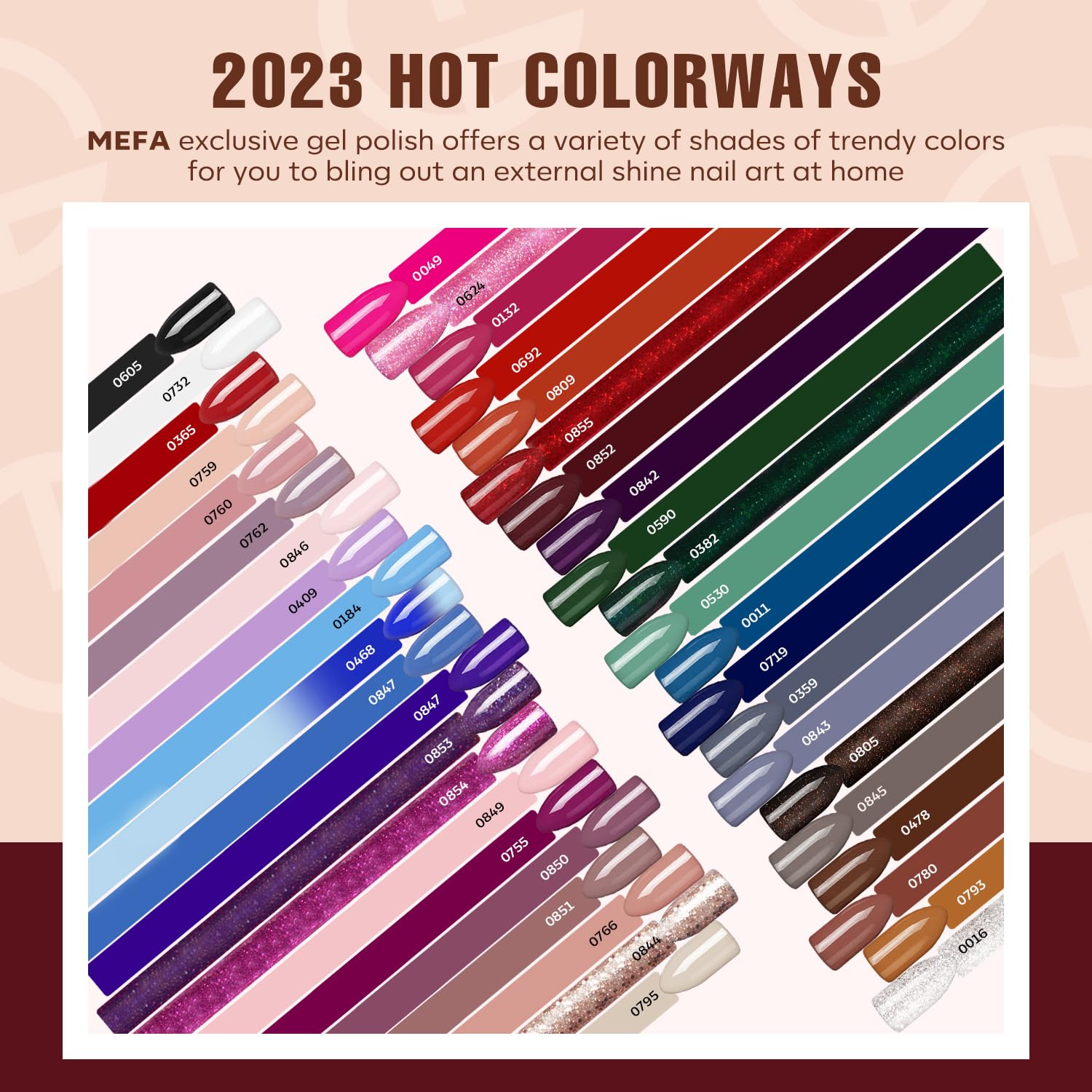 • 【DIY Salon Manicure at Home】This 42 colors gel nail polish kit covers a wide spectrum of shades suitable for any occasion throughout the year, designed with both nail beginners and experts in mind. MEFA gel polish kit includes a repertoire of nail care essentials, ensures a smoother and more nourishing nail care routine, enhance nail strength and durability.