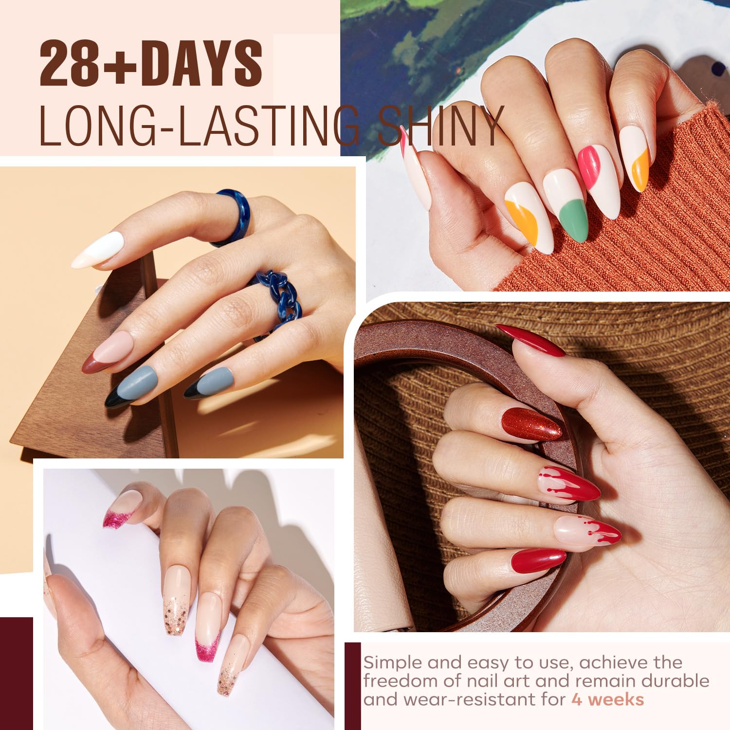 • 【Health-Conscious Composition】Crafted using natural ingredients, our gel nail polish set is devoid of harmful toxins, making them gentle on your nails and safe for regular use. Whether as a gift for Christmas, Halloween, birthdays, or anniversaries, this set is a gesture of high value and creativity. If you encounter any problems during use, please contact us directly. For a detailed application guide, please refer to the gel nail polish kit instruction manual attached.