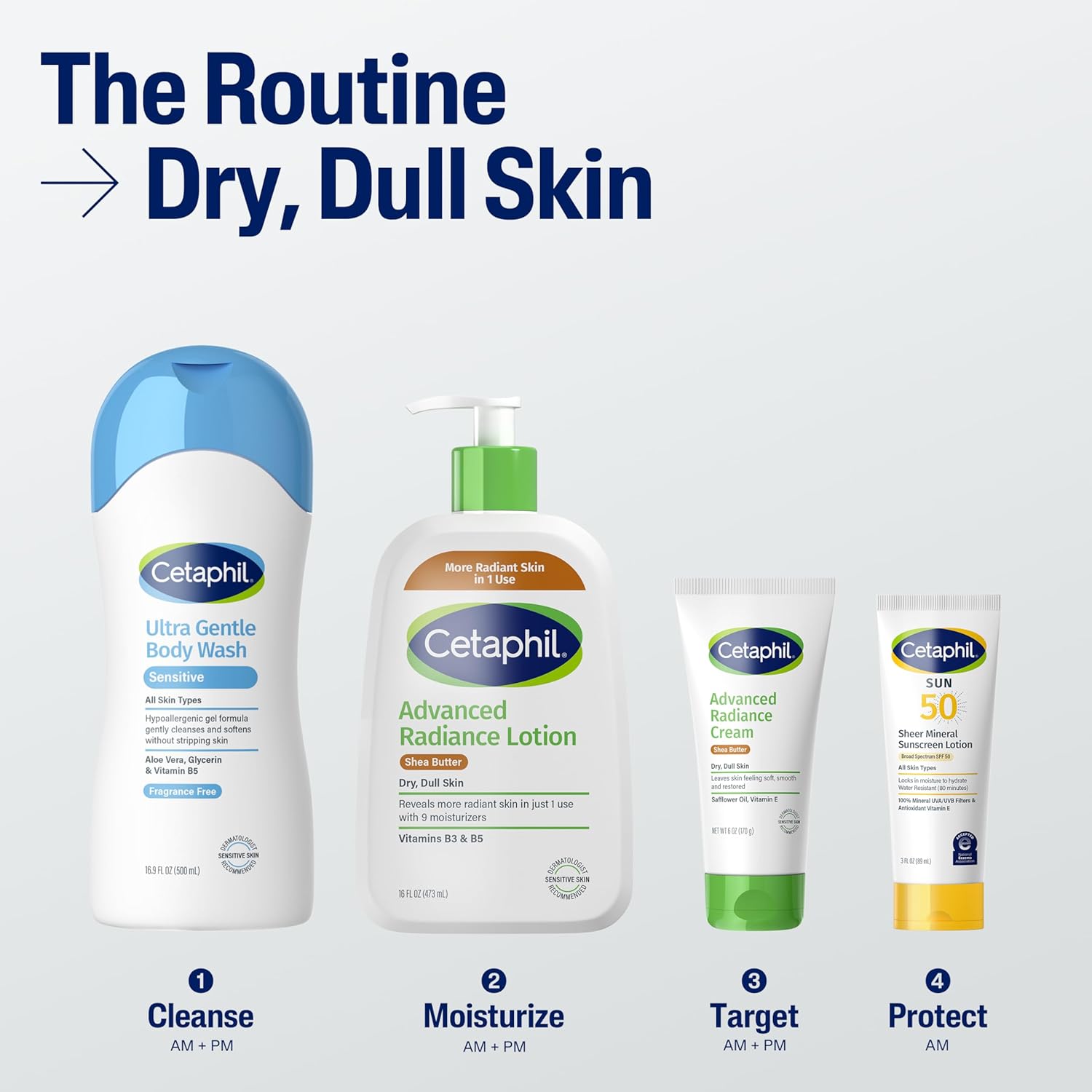 • CETAPHIL ADVANCED RADIANCE FACE & BODY CREAM: Enriched with a high concentration of shea butter to deeply moisturize and nourish skin while helping to prevent visibly dry skin from coming back