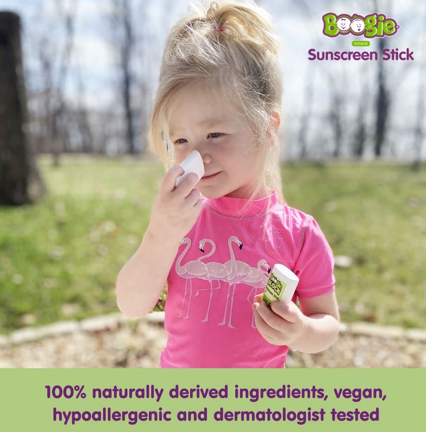 • BROAD SPECTRUM MINERAL SUNSCREEN STICK: Boogie Mineral Sunscreen Stick provides broad spectrum SPF 50 to help prevent sunburn and protect sensitive skin from harmful UVA and UVB rays. It is water resistant for up to 80 minutes.