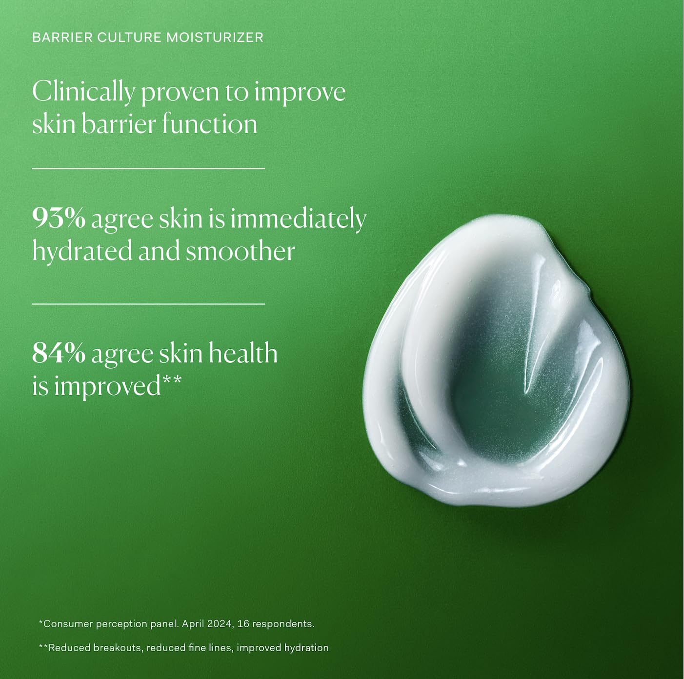 • CLEAN INGREDIENTS – We only use clinically proven, rigorously tested ingredients in our formulas to ensure optimum safety and efficacy. BARRIER CULTURE MOISTURIZER includes ceramides, peptides, niacinamide and squalane.