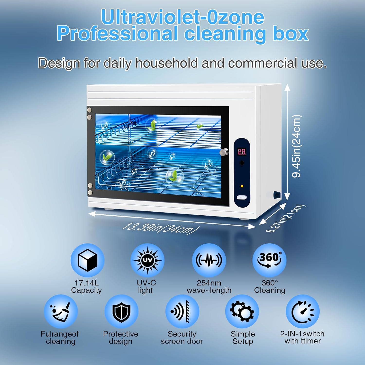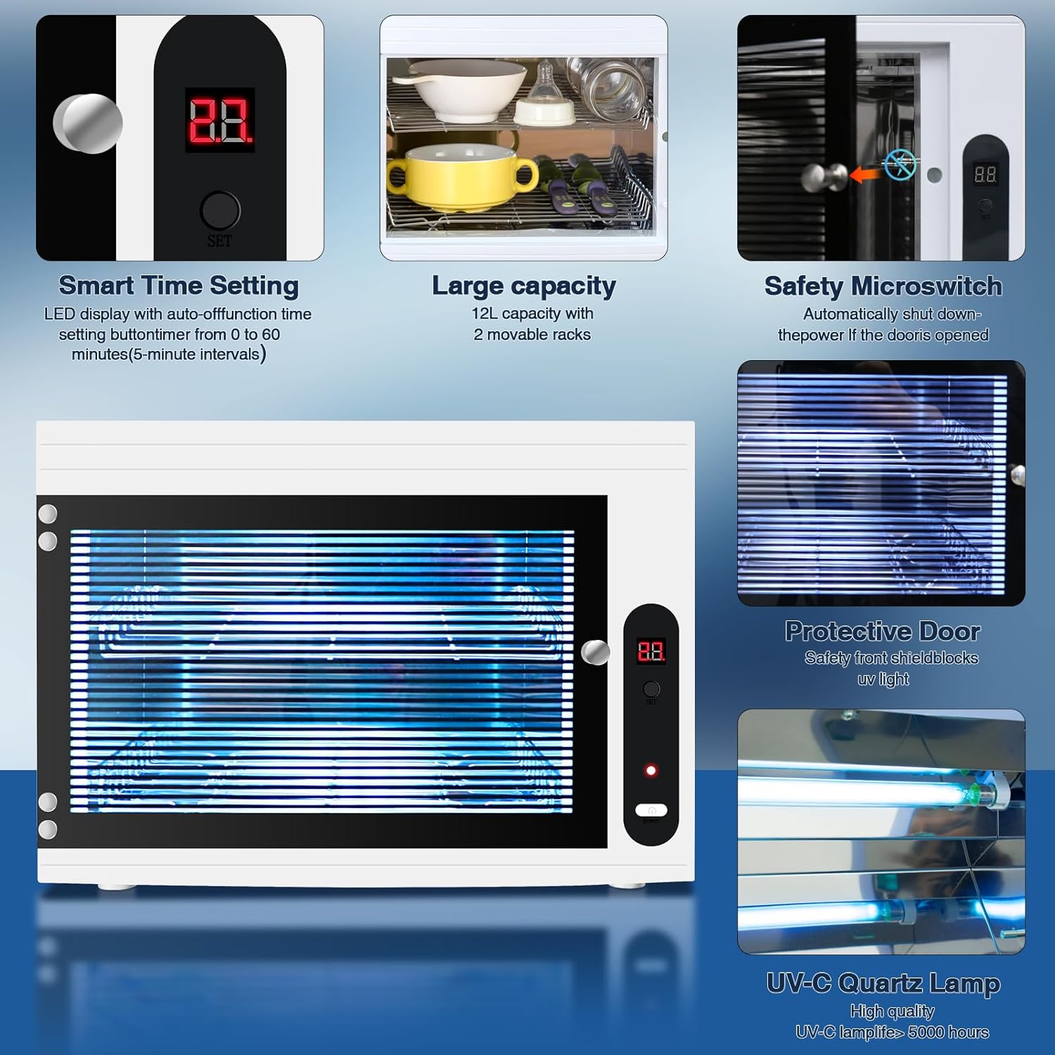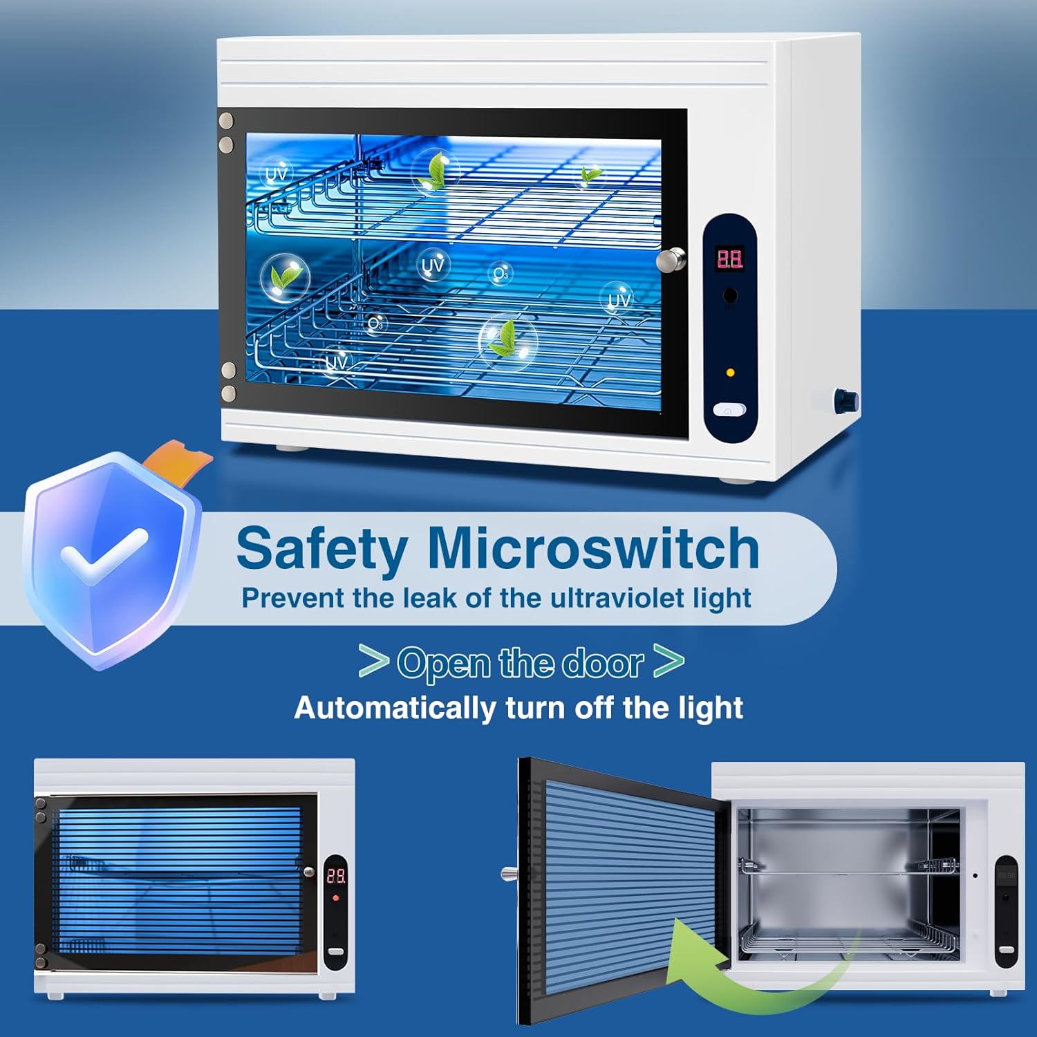 • [Safe and Convenient] The UV light features a powerful magnetic door, a high-brightness stainless steel container, and a metal shelf. When the door is opened, the light automatically turns off, and it turns back on when the door is closed.