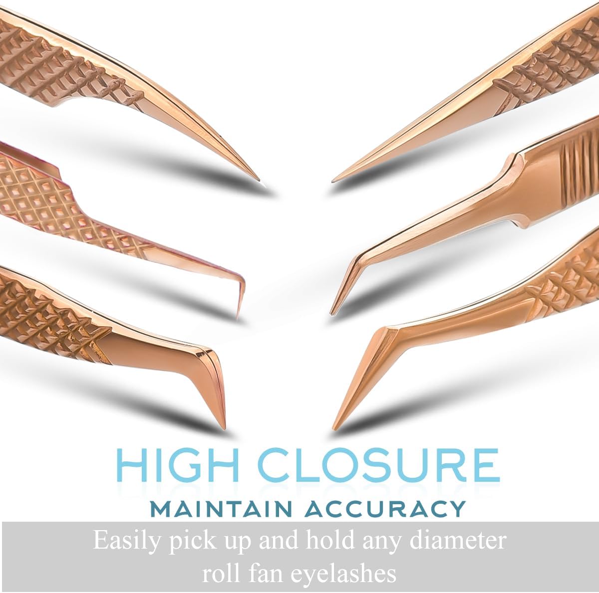 SIVOTE Eyelash Extension Tweezers Fiber Tips Japanese Steel, Set of 6 – Curved, Dolphin, 90° 45° Volume Boot & Slight Curved Tweezer – Professional Lash Tweezers for Lash Extensions Rose Gold