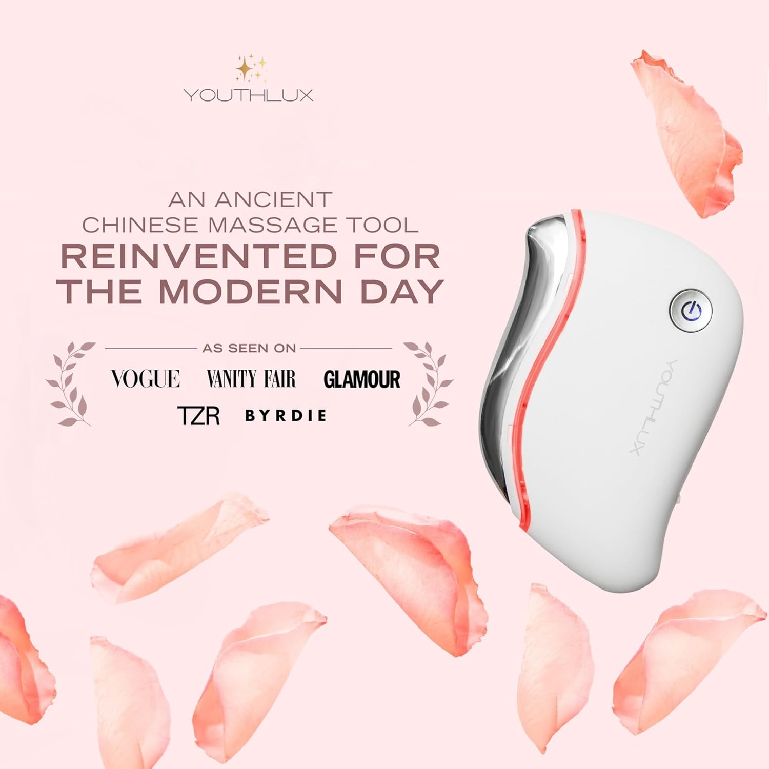 • Advanced Heated Gua Sha Tool – Upgrade your skincare with this electric gua sha device, combining traditional massage with warming (45°C), vibration at 8,000 rpm, and red LED technology for a radiant, refreshed look.