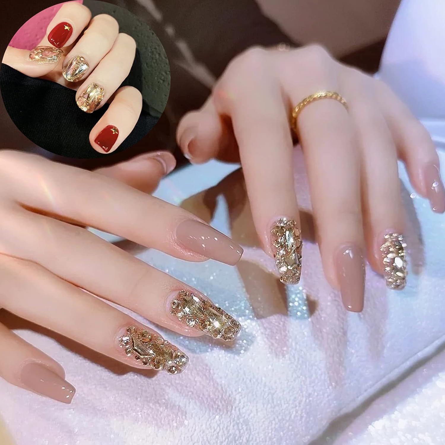 • 💎【Champagne Rhinestones for Nails】:The nail crystal kit includes 2500 round flat rhinestones of 8 kinds and 600 champagne special-shaped diamonds of 12 kinds in a transparent storage box, 1pcs nail rhinestones pen and 1pcs tweezers. Our 3D nail art rhinestones are available in different popular styles, which will add brilliance and charm to your craftsmanship and make your nails more dazzling and charming.