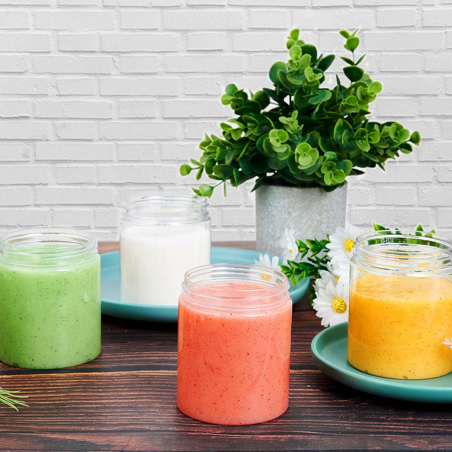 • ★【PREMIUM QUALITY】: Super set of 36 pack 8 oz round clear plastic jars, screw-on lids with foam liners. Made of high-quality PET, plastic sample jars are BPA free, 100% food safe, non-toxic and stable,which makes them excellent for hair products, skin products, cleanser, and other personal care products.