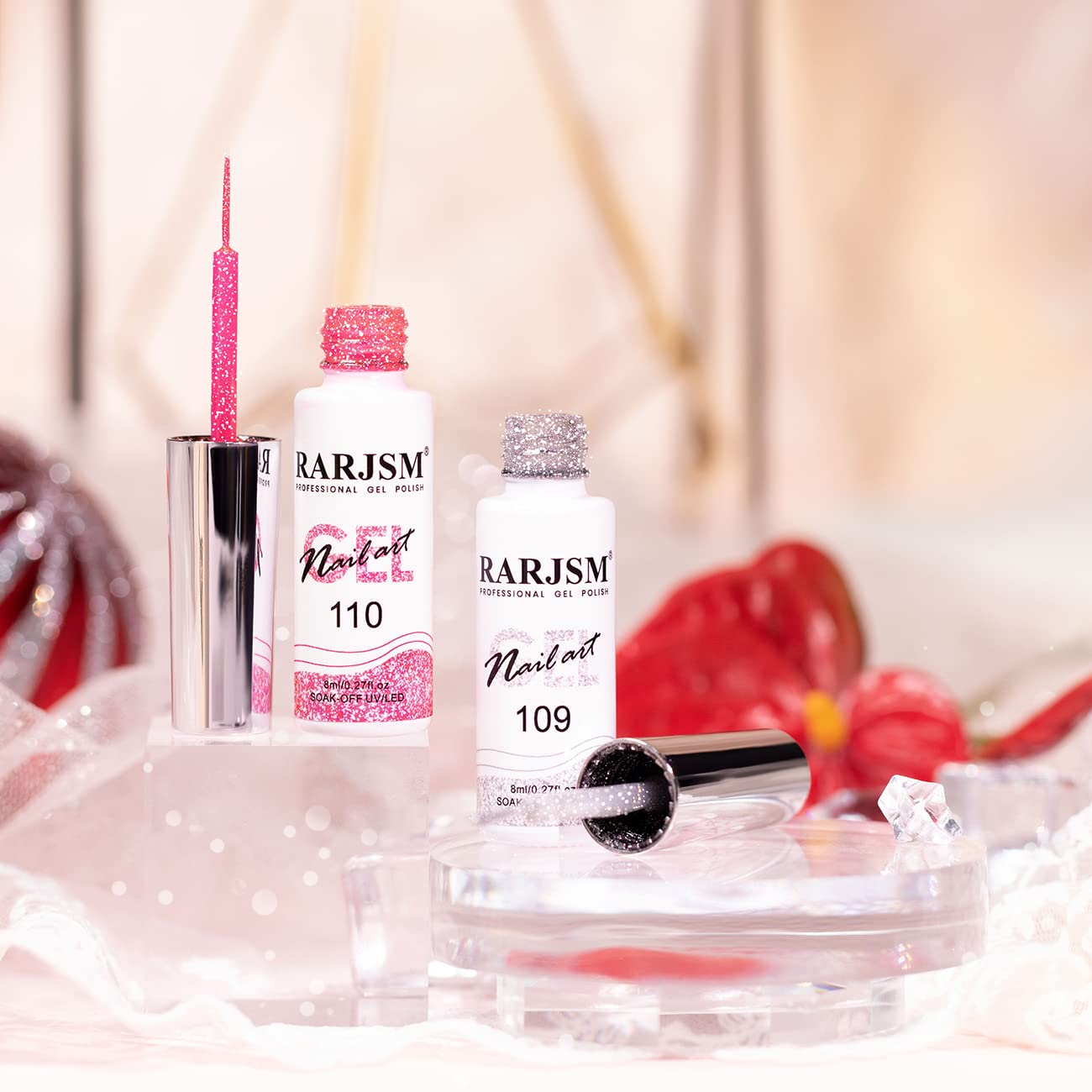 RARJSM Gel Liner Nail Art Reflective Glitter Gel Nail Polish Thin Brush Silver Neon Hot Pink Flash Diamond PaintedGel 2PCS Set Soak off Curing Requires 8ml for Home Salon Diy Nail Design Decoration