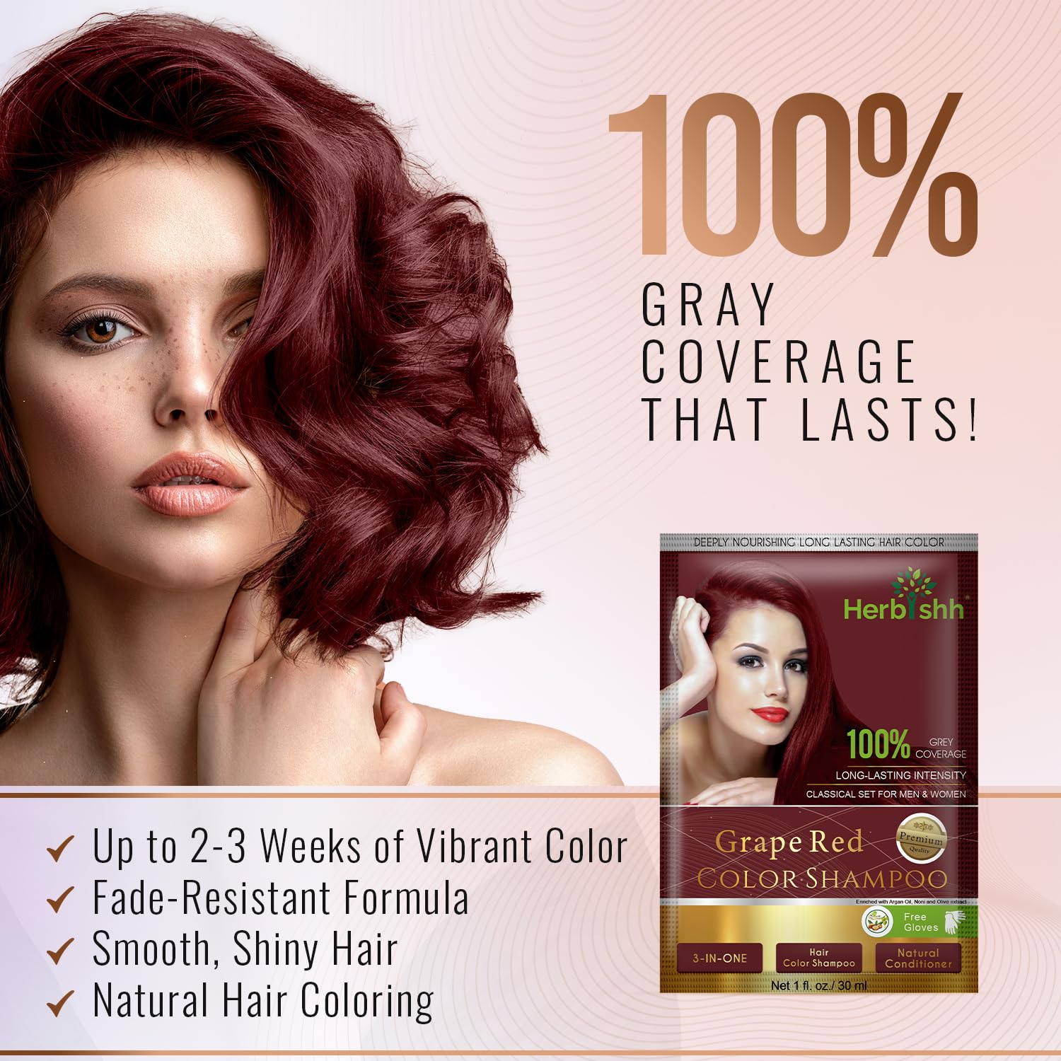• LONG LASTING GREY COVERAGE – Give your greying hair a new lustrous, vibrant, and young look, while replenishing the lost health of weak strands with Herbishh Hair Color Shampoo for Grey Hair. With a special combination of active botanicals, our hair color shampoo dye is sure to give your hair a deep grape red color that will last up to 2 to 3 weeks.