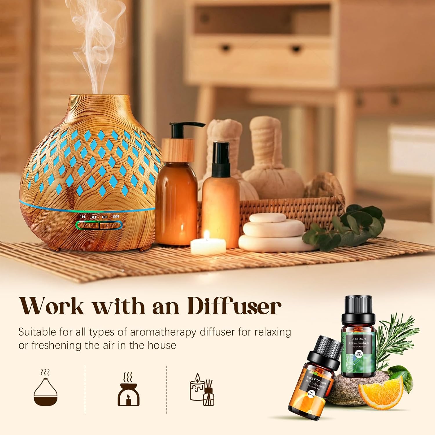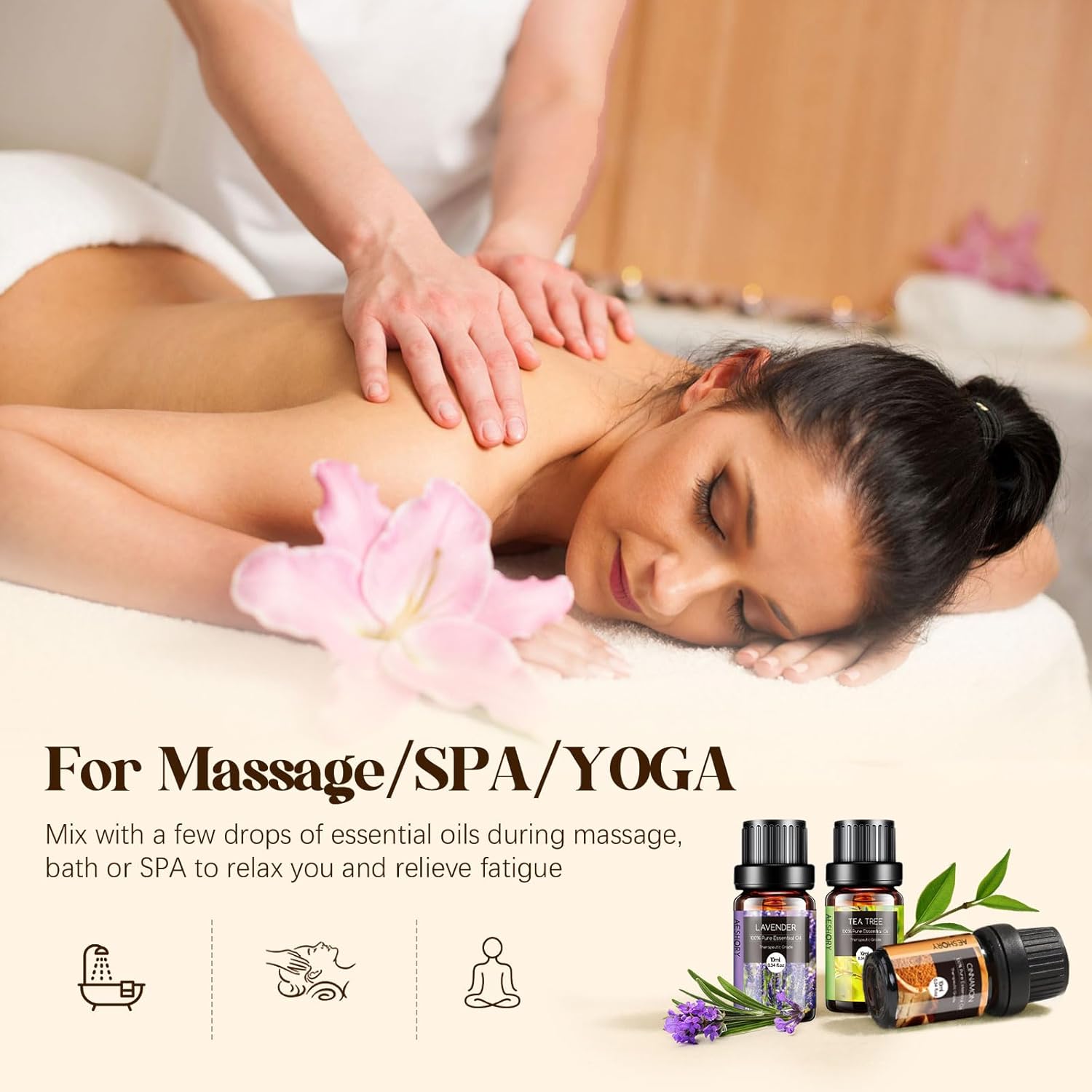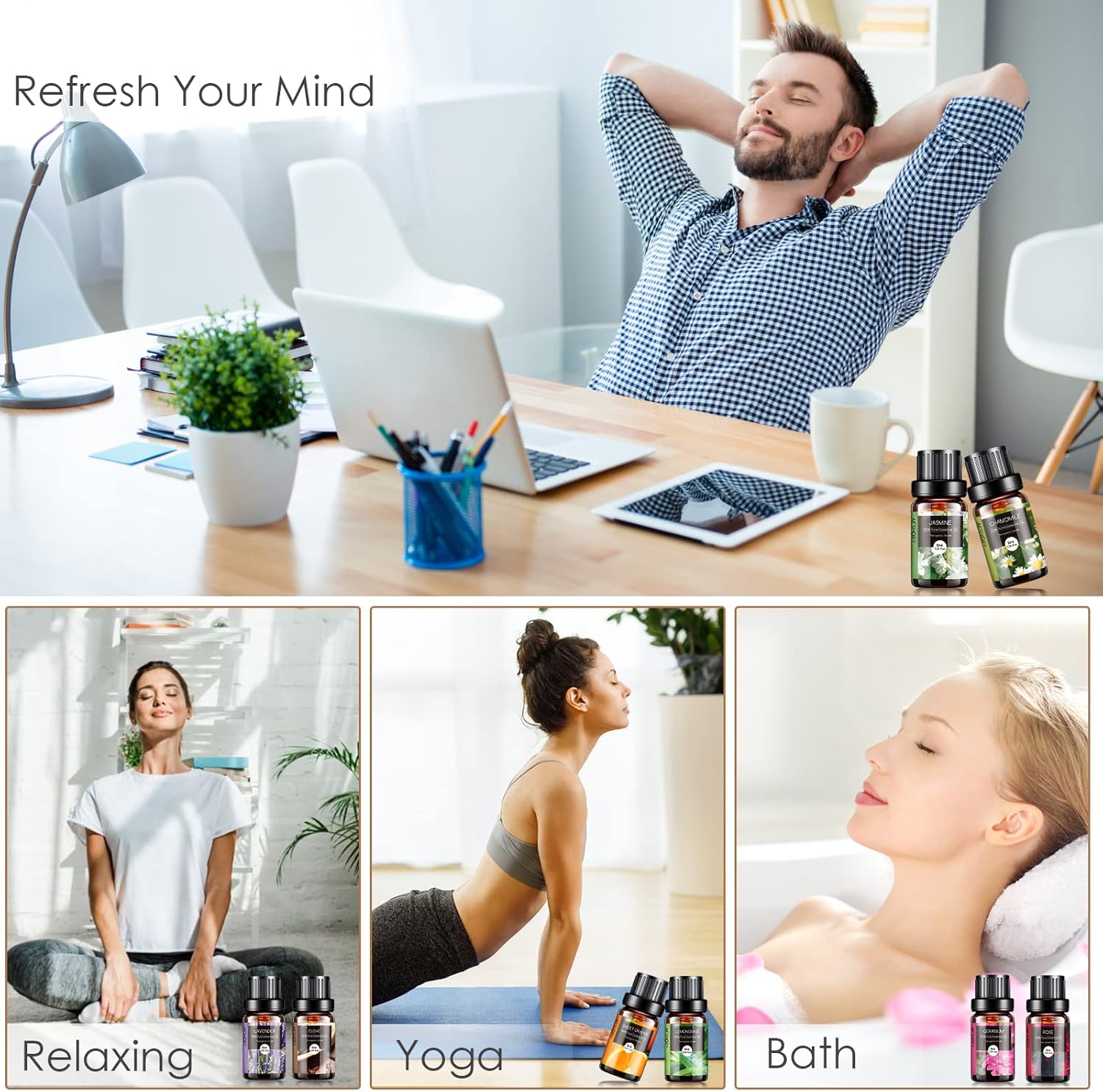 • 🎁Multi-Use: Our essential oils always adopt rigorous quality control standards. Simply add a few drops to any aromatherapy diffuser and fill your entire room with that aroma. And suitable for humidifier, aromatherapy, steam inhalations, hair or skin care, massage, bath, saunas, air freshening, home fragrance (bedroom, living room, bathroom, study room), office (workstation, conference room), yoga room and spa, etc.