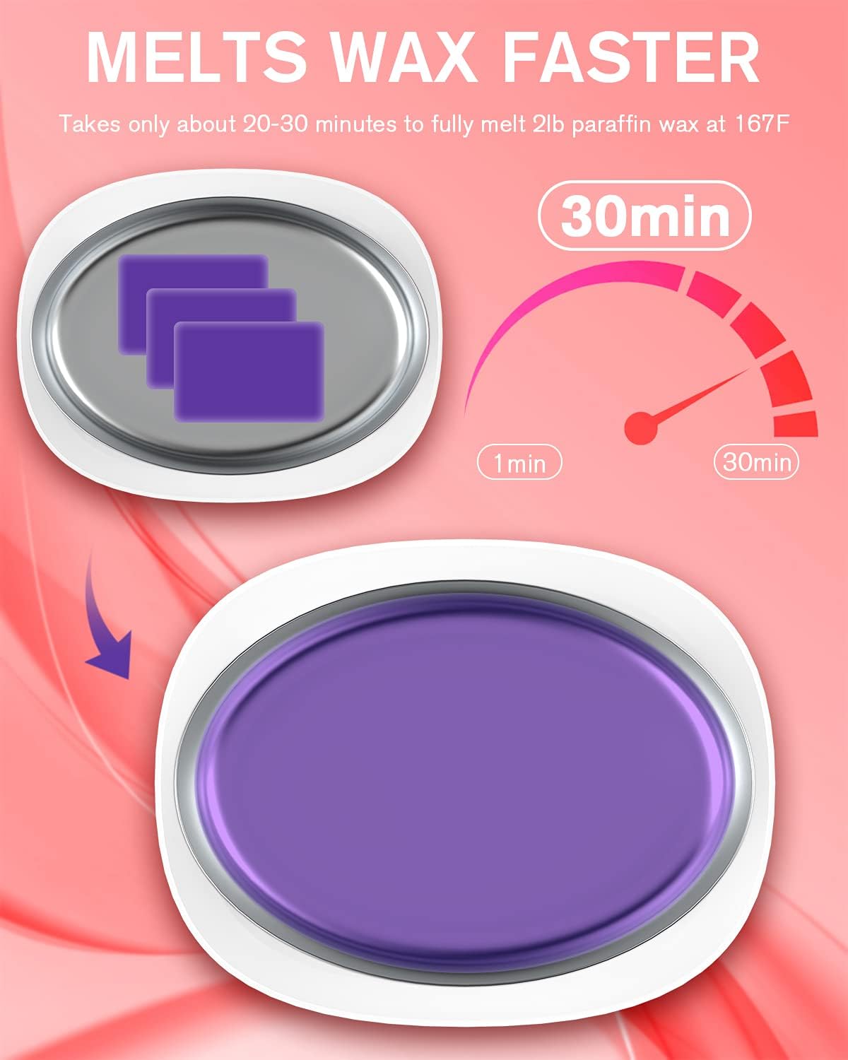 • Large Capacity / Quick Heat: paraffin wax machine has a large opening inner container , which offers you enough space to dip your hands, elbows or feet in paraffin warmer machine. Melts wax quickly and evenly , takes just 30 minutes to fully melt 2 lbs of paraffin wax at 167 °F. Turn Off the machine when dipping