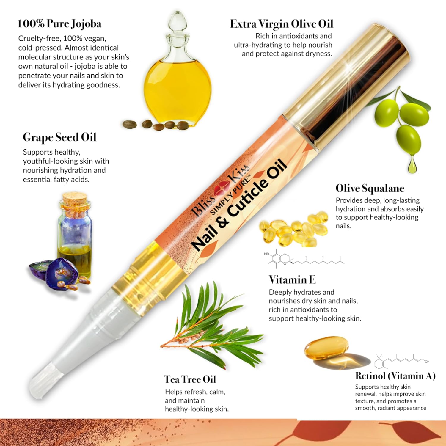• Mess-Free, On-the-Go Application – The Bliss Kiss cuticle oil pen allows for precise, controlled nail strengthener and growth serum application without spills. Convenient nail growth oil for use at home, the office, or on the go.