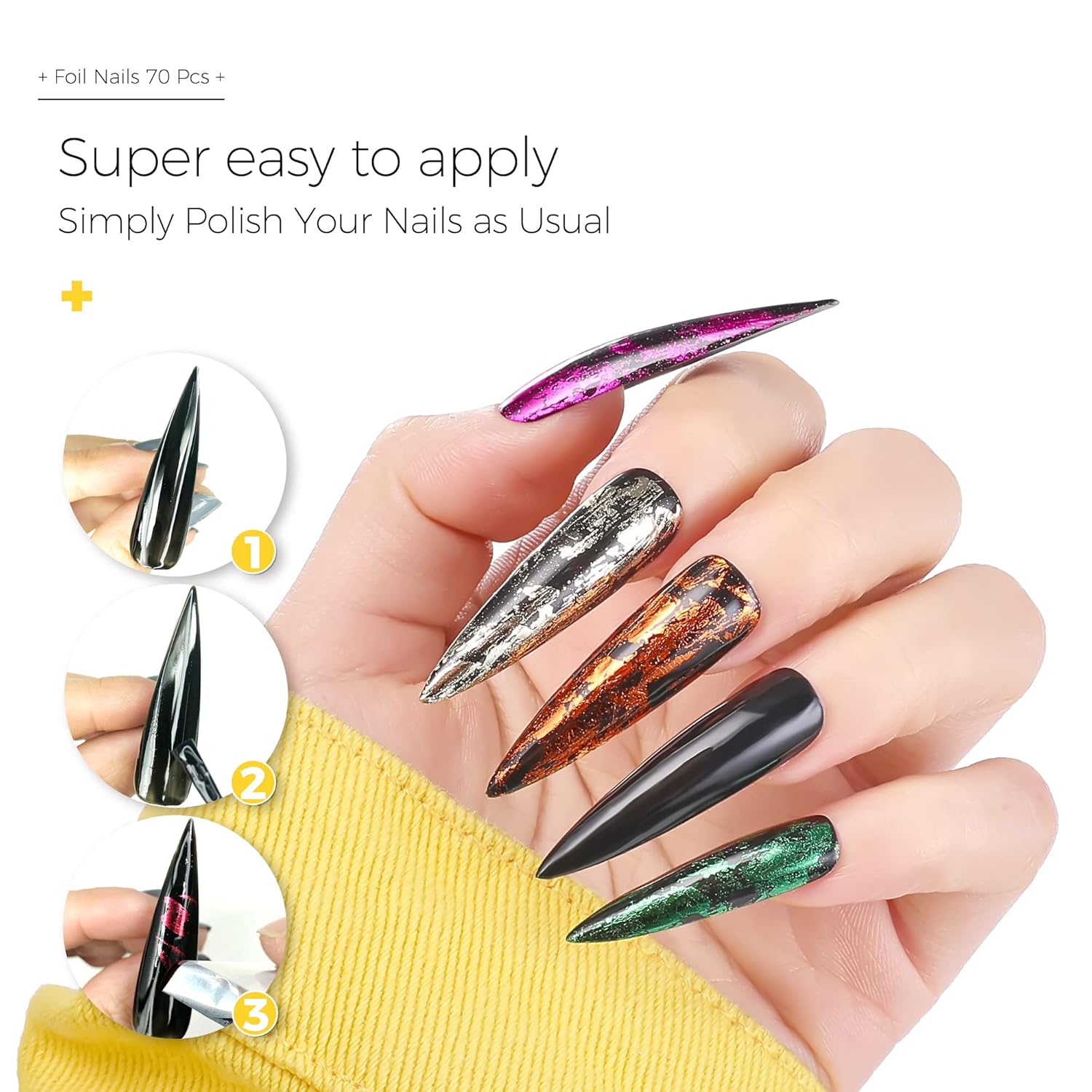 • The Most Popular 70 PCS Different Stickers Included--Burano nail foil kit includes 70 PCS(4cm*20cm) nail foil glue with foil stickers set, you can create more than thousands of designs with transfer foils, transfer foil glue DIY on your own way.