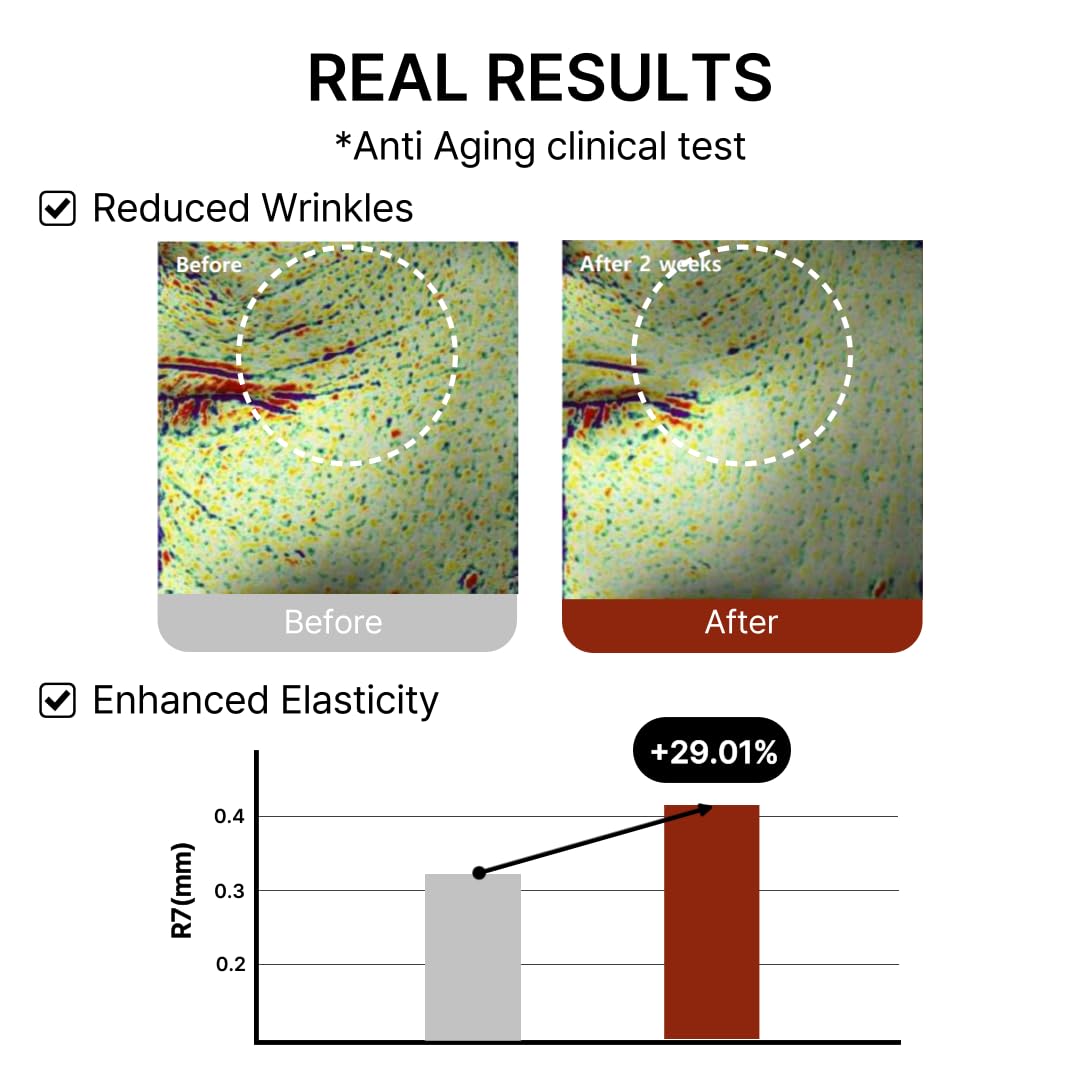 • ANTI-AGING SERUM Antioxidants such as niacinacmide, propolis extract, vitamin E, ubiquinone, resveratrol, which makes skin ultimately healthy rather than giving a temporary good feeling through clear complexion, improvement skin's barrier, dimensions of wrinkles, hyperpigmentation and bumps.