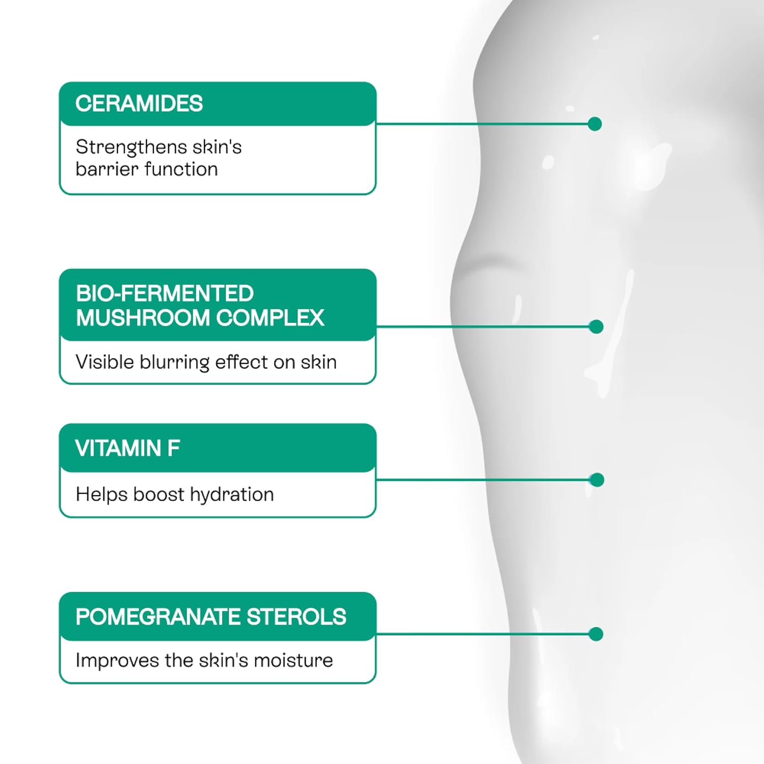 • Key ingredients: Hyaluronic Acid, Bio-fermented Bifidus, Reishi Mushroom Extract, Ceramides, Pomegranate Sterols