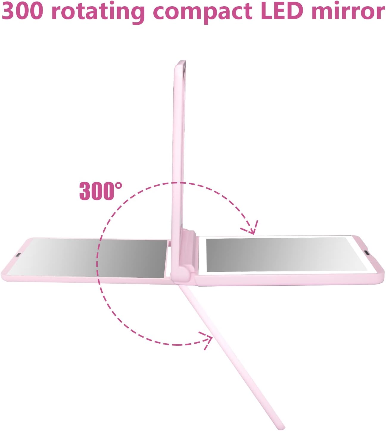 • 300°Flip Folding Portable Mirror:This travel makeup mirror can achieve a 300-degree flip, so whether you want to use the magnified mirror or the illuminated mirror, you can place it at will.Can be handheld or stand on