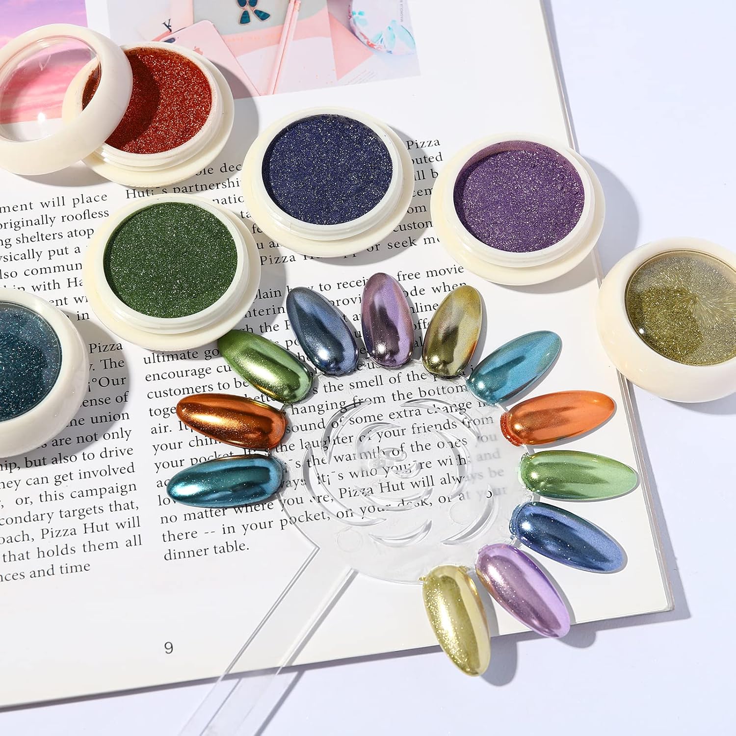 • 💕Wide Application: The chameleon chrome nail powder is applied on UV gel nails, acrylic nails, natural nails, etc, also a helpful DIY tool for decorating homes, cell phone cases, glasses, body art, etc.