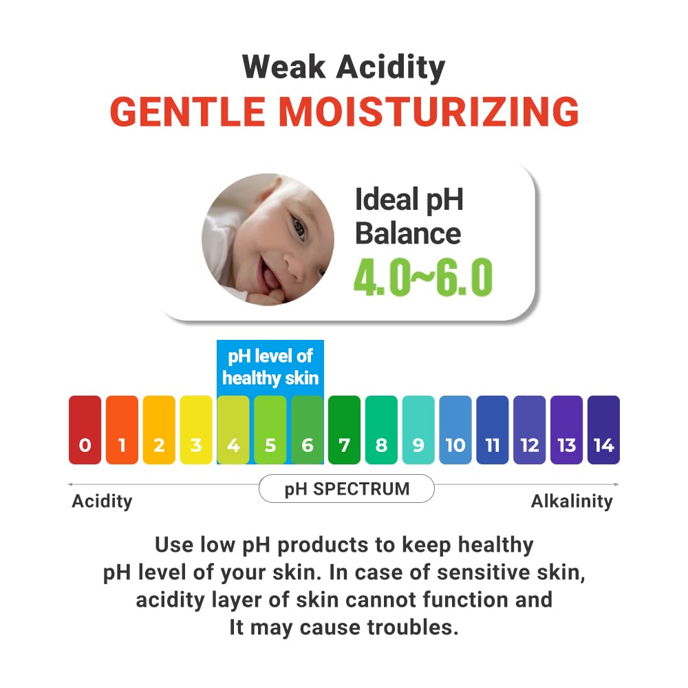 • LOW PH FORMULA FOR GENTLE CARE: This Korean moisturizer has a formula with a low pH level similar to the healthy skin’s pH maintains the skin’s healthy condition without irritating it and helps rough skin to be silky and healthy.