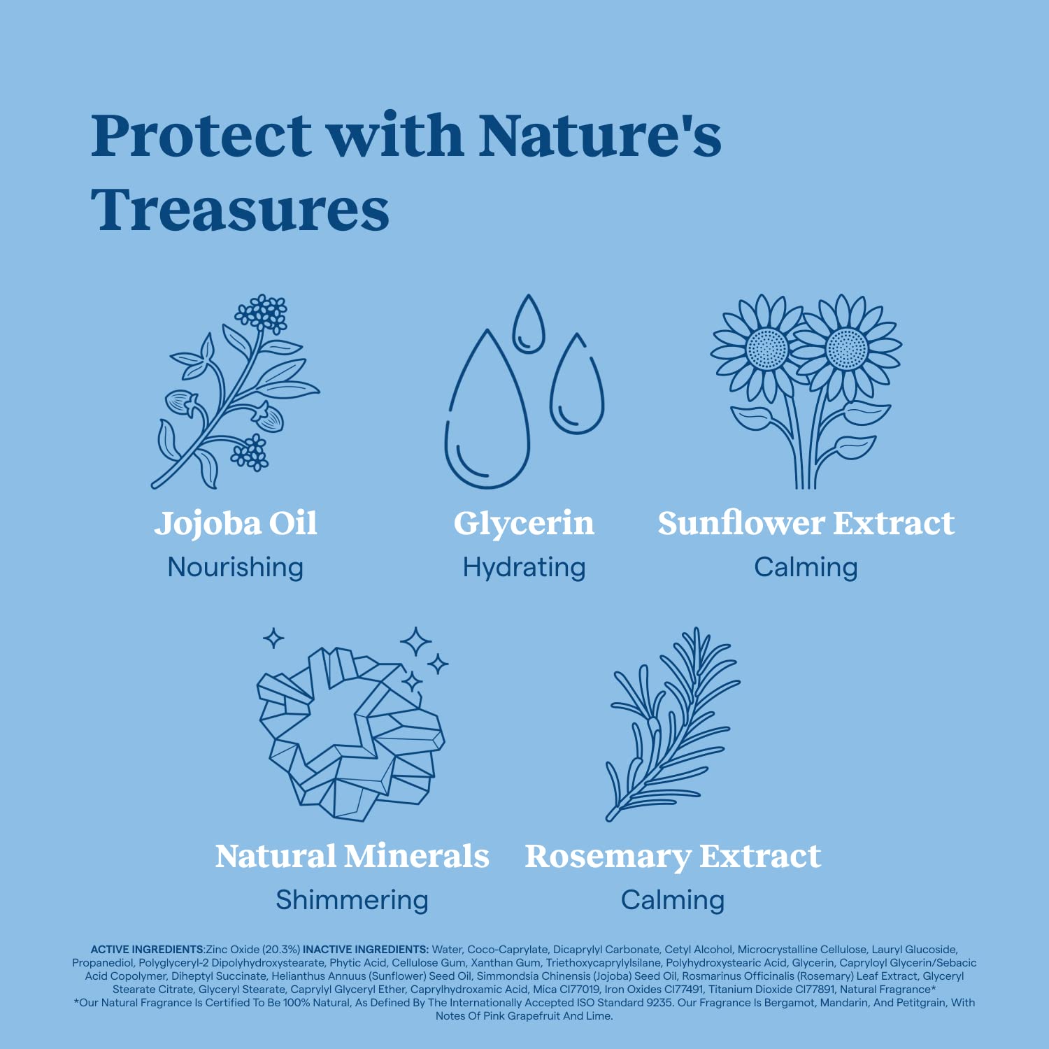 • An all-in-one sunscreen: Our daily broad-spectrum mineral sunscreen protects your face from harmful UVA/UVB rays and enhances your natural glow with a shimmering golden hue - oh, and it smells great