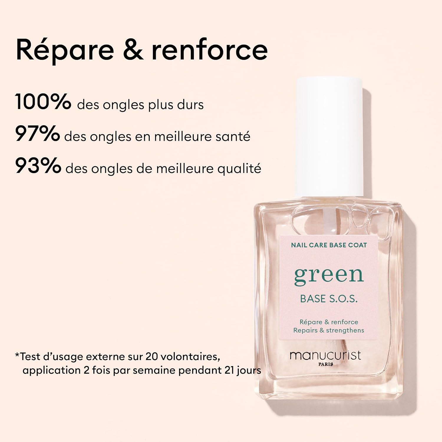 • ✅ HOW TO USE? For maintenance, apply as a strengthening base on its own or before applying the Green color of your choice. For restorative treatment, apply twice a week to regain healthy and rejuvenated nails.