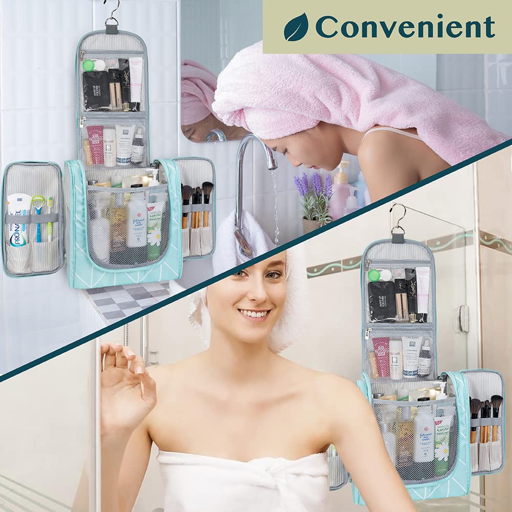 • COSMETICS TRAVEL BAG ORGANIZER: This toiletry bag for women has a hanging hook and multiple pockets that help you stay organizer during business trip, vacation travel. The hanging hook makes it easy to hang the toiletry bag to bars in the hotel shower bathroom. Unzip your toiletry bag to reveal compartments to organize your shampoo, skincare face hygiene products. This toiletry travel bag is an essential accessory for cruise in Europe, plane, Hawaii Trip, and honeymoon.