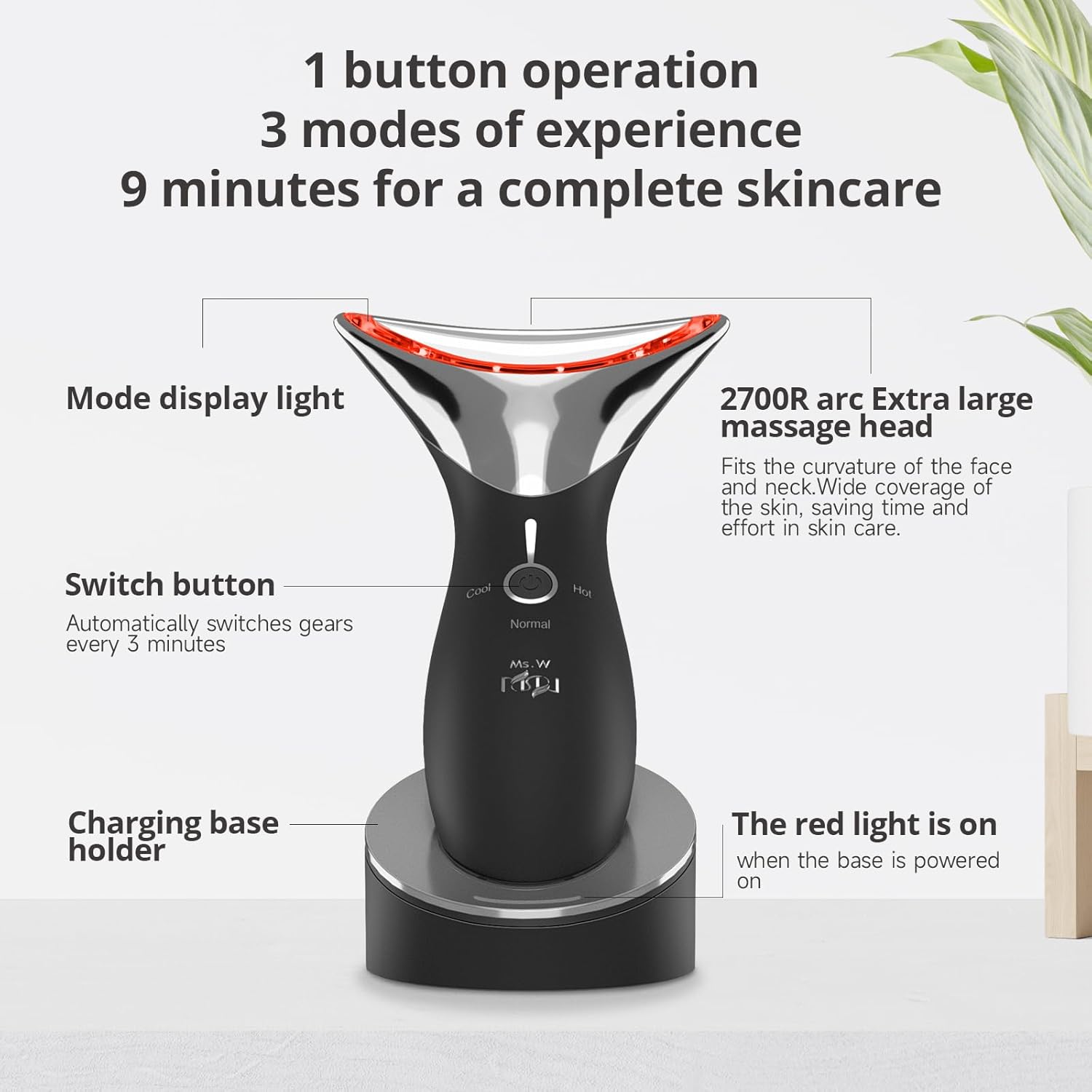 • 【What's the Benefit After Use】-----Ms.W facial massager targets auxiliary skin care effect. Slight vibration is excellent for facilitating the absorption of skincare products. The cold mode would be perfect for dark circles, puffy eyes, and cooling facial skin. The heat is great for relaxing your facial muscles, helping with dry lines, smoothens, and soothing skin. Let your face be fresher, brighter, and healthier.