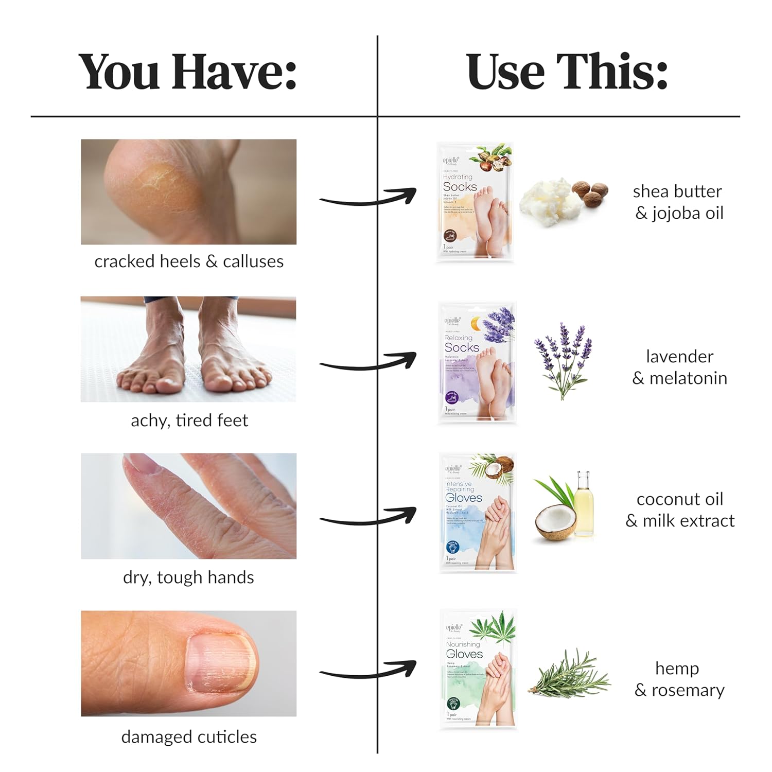 • Visible Results in 15 Minutes: Delivers instant relief to rough, dry skin. After just one treatment, our foot masks moisturizing socks leave skin softer, smoother, and more comfortable.