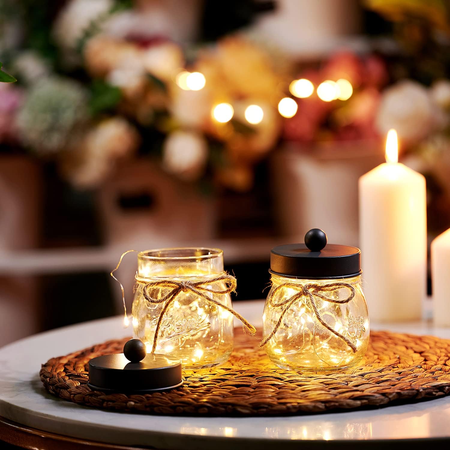 • ✔️Versatile Gift Idea: Ideal for a variety of occasions, this bathroom organizer and storage set is perfect for weddings, housewarming events, birthdays, Mother's Day, Thanksgiving Day, Christmas, New Year, bridal showers, and baby showers. It also makes an excellent gift for mothers, friends, sisters, co-workers, or anyone else, suitable for use throughout the year. The package includes: 2 pack glass mason jars with stainless steal lids. 2 Decorative Twines. 2 Cute Label Stickers.