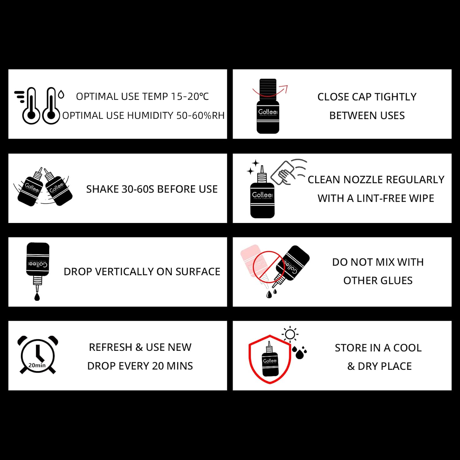 • ✅ Low Stimulus and Long Lasting - This eyelash extension glue is low odor, low stimulus and long lasting. All Golleepro eyelash extension waterproof glues and lash removers are medical grade and carefully tested to ensure the highest quality and safety standards available for eyelash extension application and removal. Offering superior bonding performance, our eyelash extension glues are prepared to take on any occasion or activity. Choose the best eyelash extension glue here