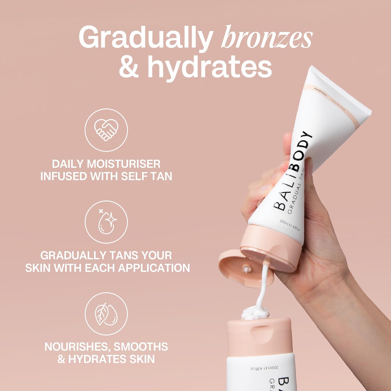 • Product Benefits : It’s our bestselling self tan formula in an everyday body lotion. This game changing product combines a deeply hydrating moisturiser with fake tan. Leaves you with that Insta famous Bali Body tan, no sun required. It’s our bestselling self tan formula in an everyday body lotion. This game changing product combines a deeply hydrating moisturiser with fake tan. Leaves you with that Insta famous Bali Body tan, no sun required.