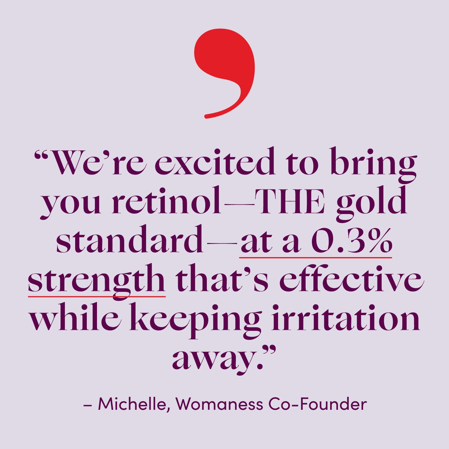 • CLEAN, EFFECTIVE SKINCARE FOR WOMEN : Womaness creates high-performance facial serums without compromise. This retinol anti aging serum is free from estrogen, phytoestrogens, added hormones, parabens, phthalates, sulfates, artificial colors, formaldehyde, and mineral oils. Thoughtfully formulated to hydrate, nourish, and celebrate skin at every stage of life.