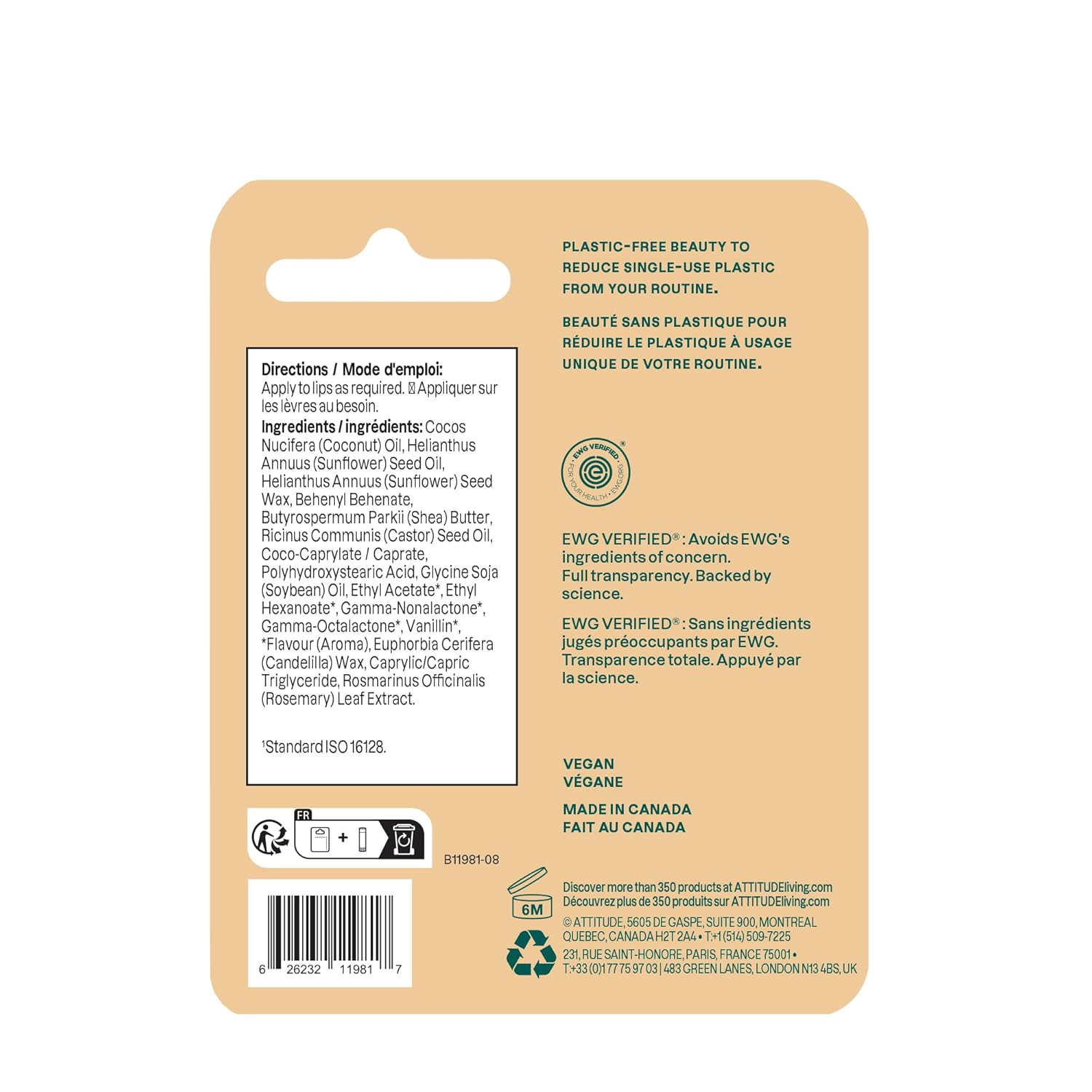 ATTITUDE Lip Balm, Natural Origin, Nourishes & Protects, Shea Butter, Coconut & Castor Oils, EWG Verified, For Dry Lips, Men and Women, Vegan, Coconut, 0.3 Oz