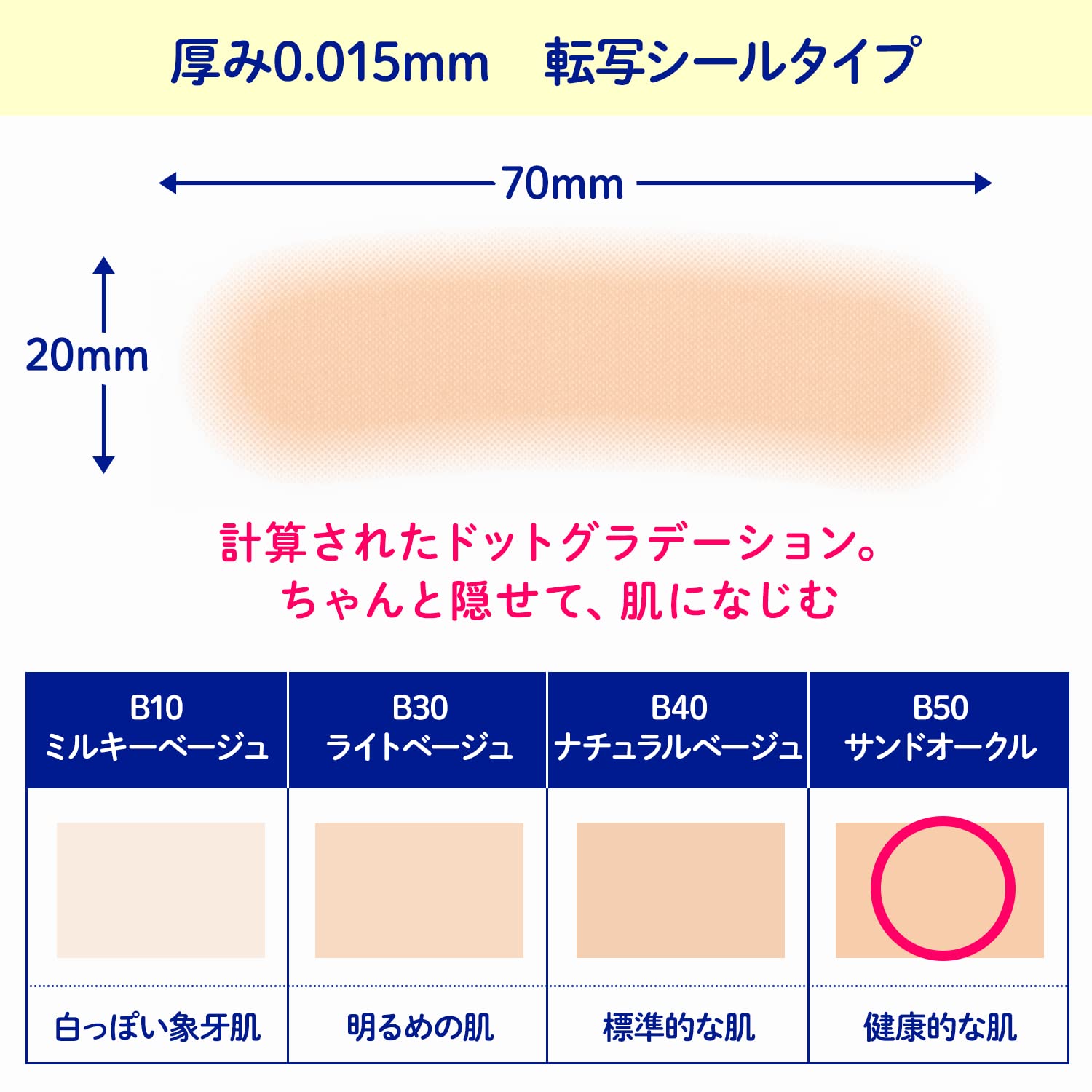 • Ultra-thin 0.015mm, fine dot gradation for excellent skin blending. Unnoticeable.