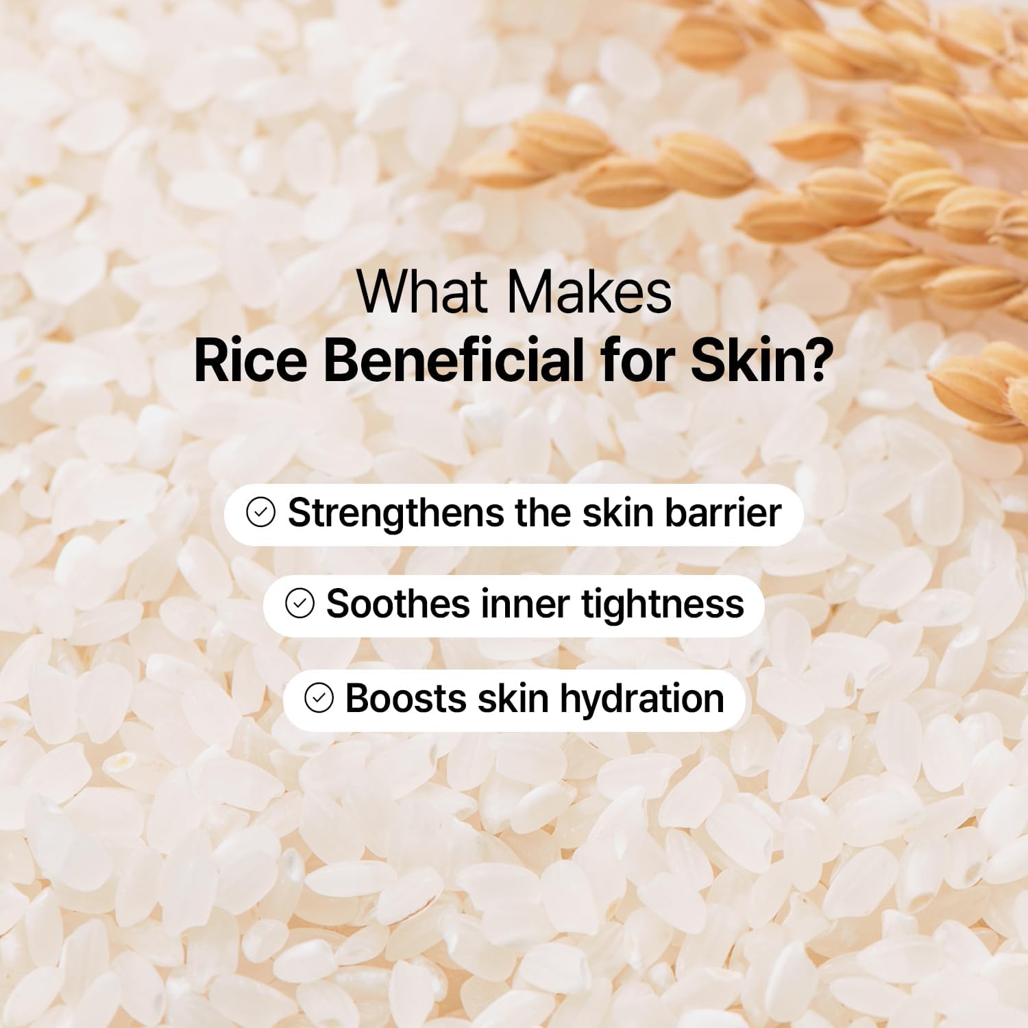 • Infused with 82% rice bran water, rich in vitamins B and E, perfect for soothing tight skin and creating a healthy glow.