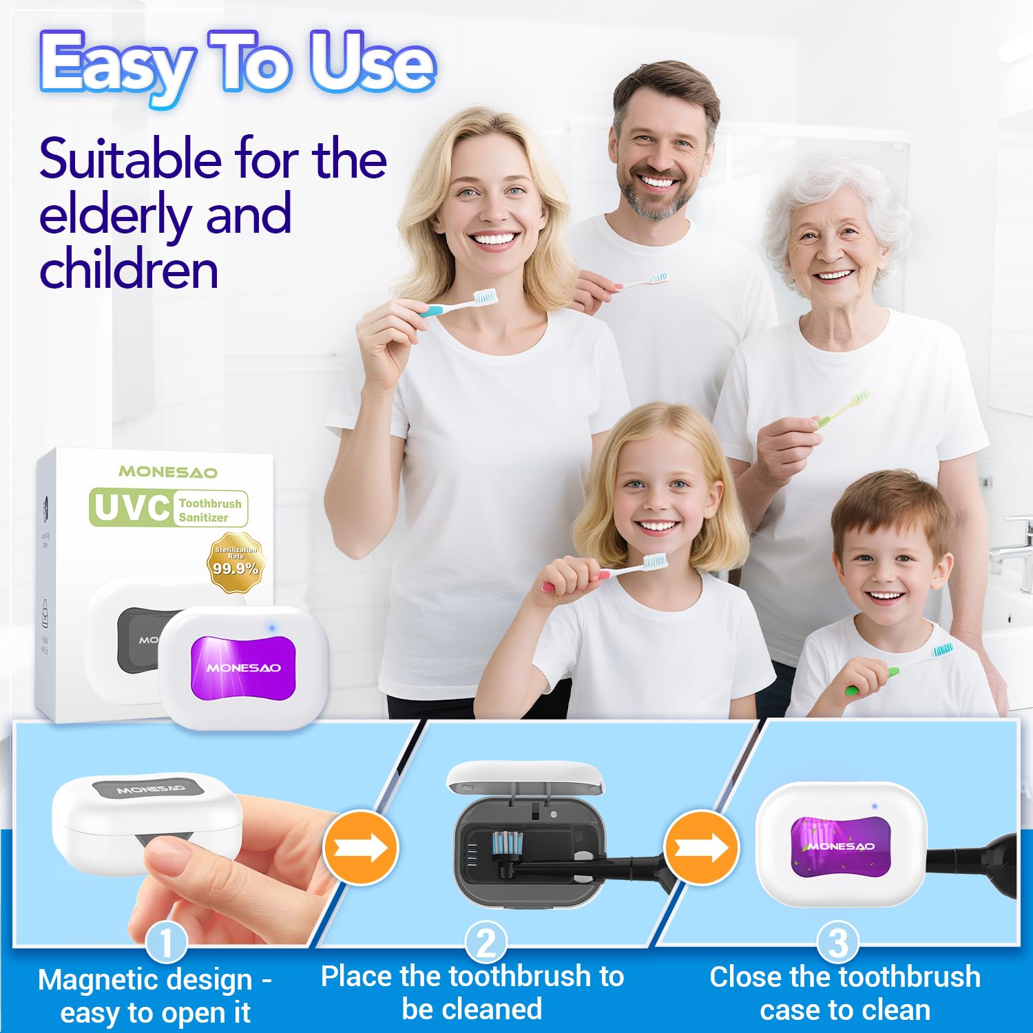 MONESAO Toothbrush Sanitizer Case, Portable Mini Toothbrush Covers with Holder, Rechargeable Travel Home Toothbrush And Holder, Cleaner Case for All Electric & Manual Toothbrushes (White)