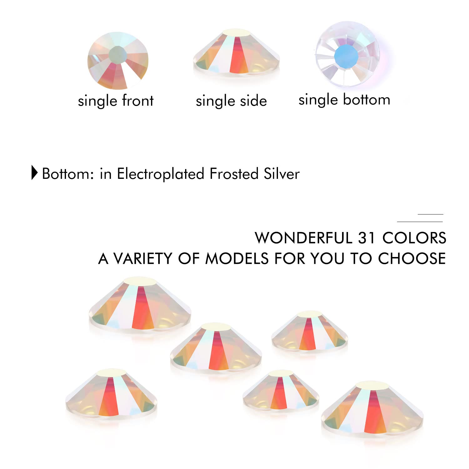 • Different Sizes Available:These rhinestones for crafts come in a wide range of sizes (1.6mm, 2mm, 2.4mm, 2.8mm, 3mm, 4mm, 4.8mm) to suit your different needs