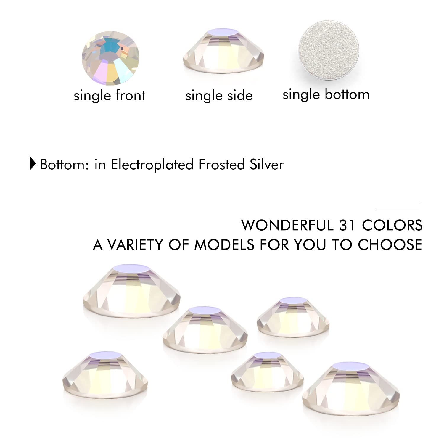 • Different Sizes Available:These rhinestones for crafts come in a wide range of sizes (1.6mm, 2mm, 2.4mm, 2.8mm, 3mm, 4mm, 4.8mm) to suit your different needs