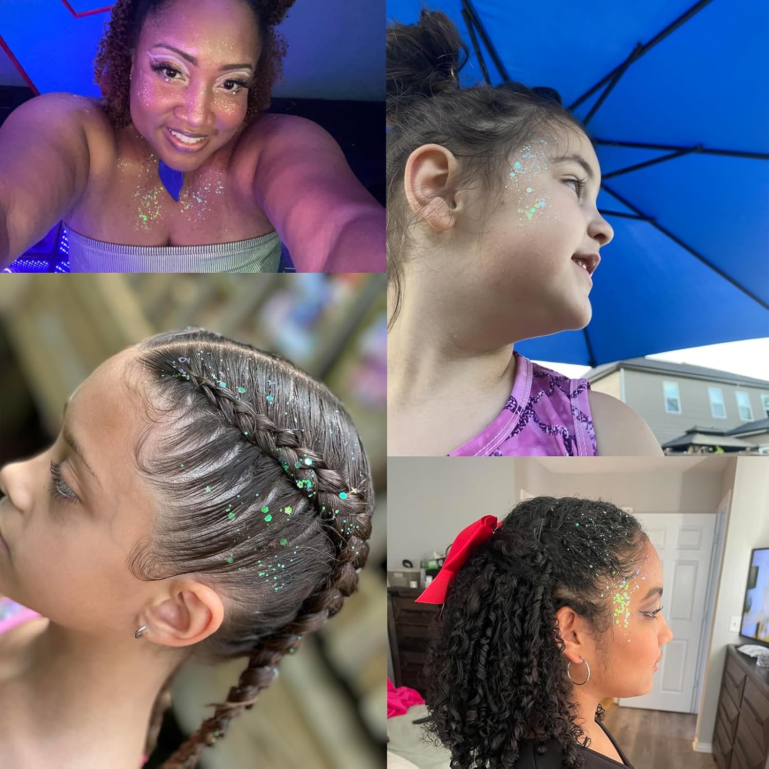 • Safe Ingredients --- Music festival rave glitter are safe and non-irritating,you do not have to worry about glue irritating your skin,gel of the glitter can protect your skin from sequin.All face glitter formulated with non toxic material,safety face body glitter for kids and women,great birthday party decorations for girls
